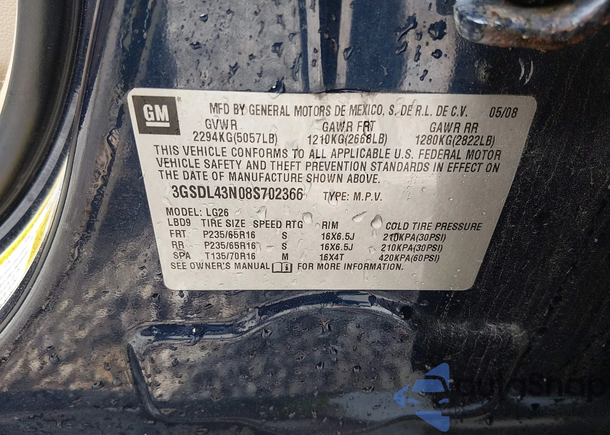 • VIN 3GSDL43N08S702366