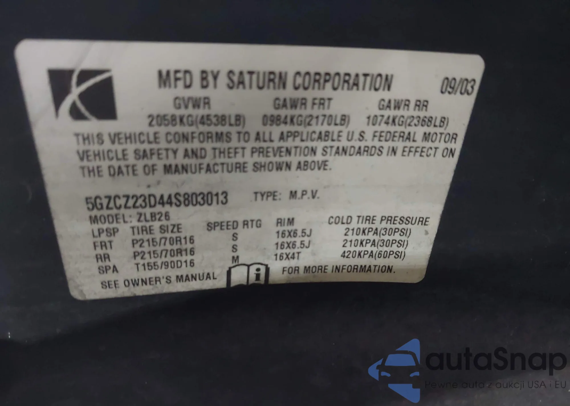 • VIN 5GZCZ23D44S803013