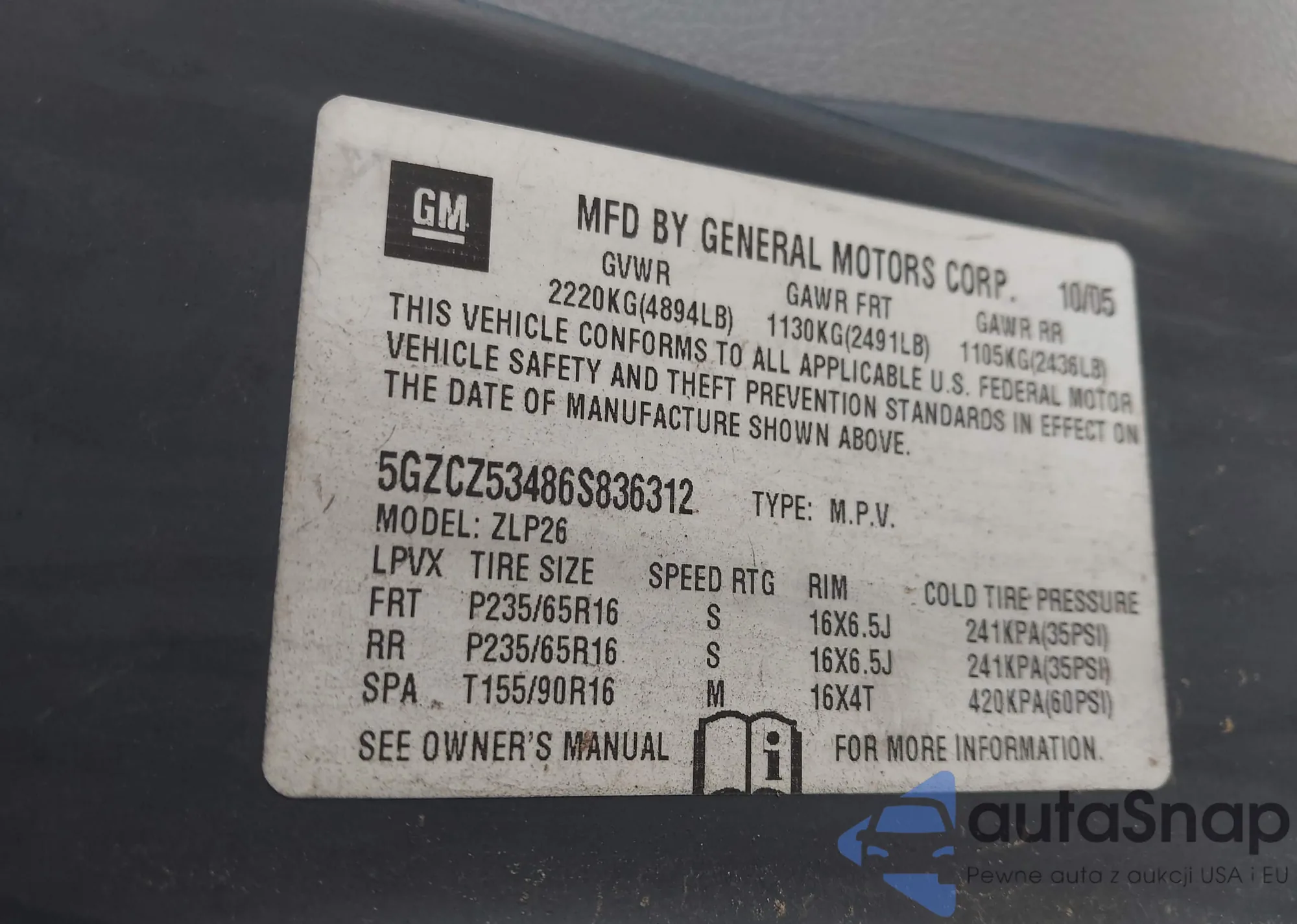 • VIN 5GZCZ53486S836312