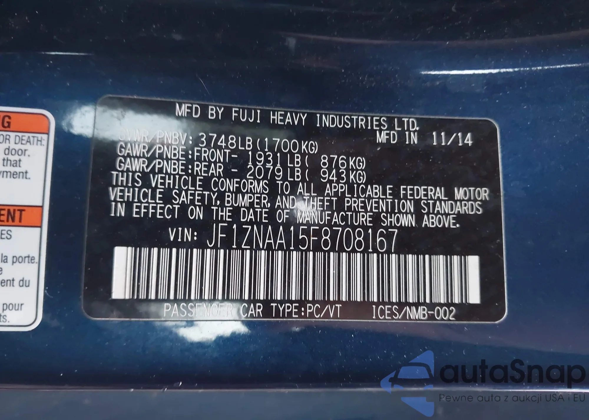 • VIN JF1ZNAA15F8708167