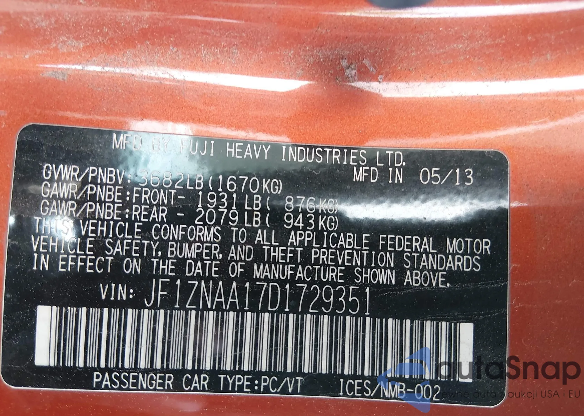 LOT: 44184301 VIN: JF1ZNAA17D1729351