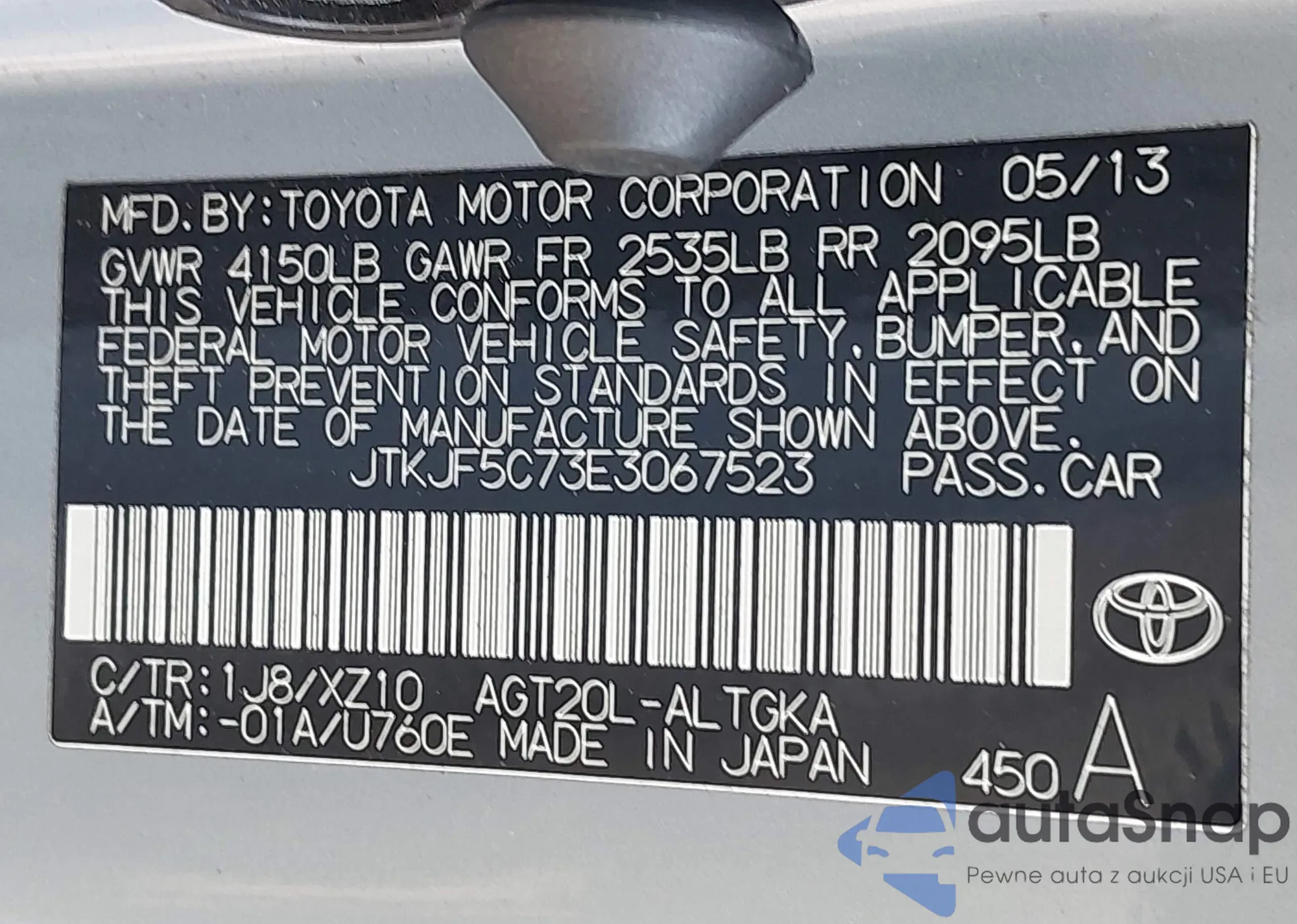 • VIN JTKJF5C70D3051441