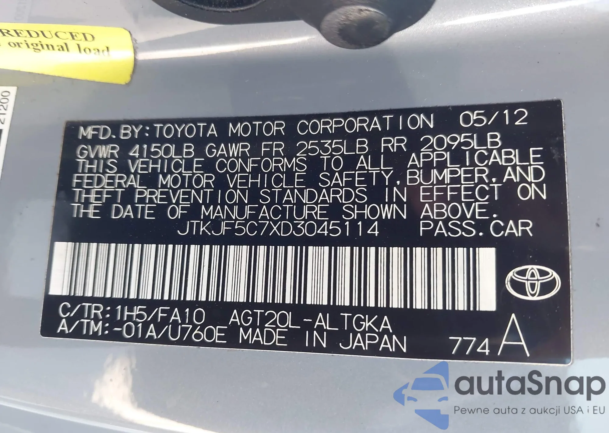 • VIN JTKJF5C7XD3045114