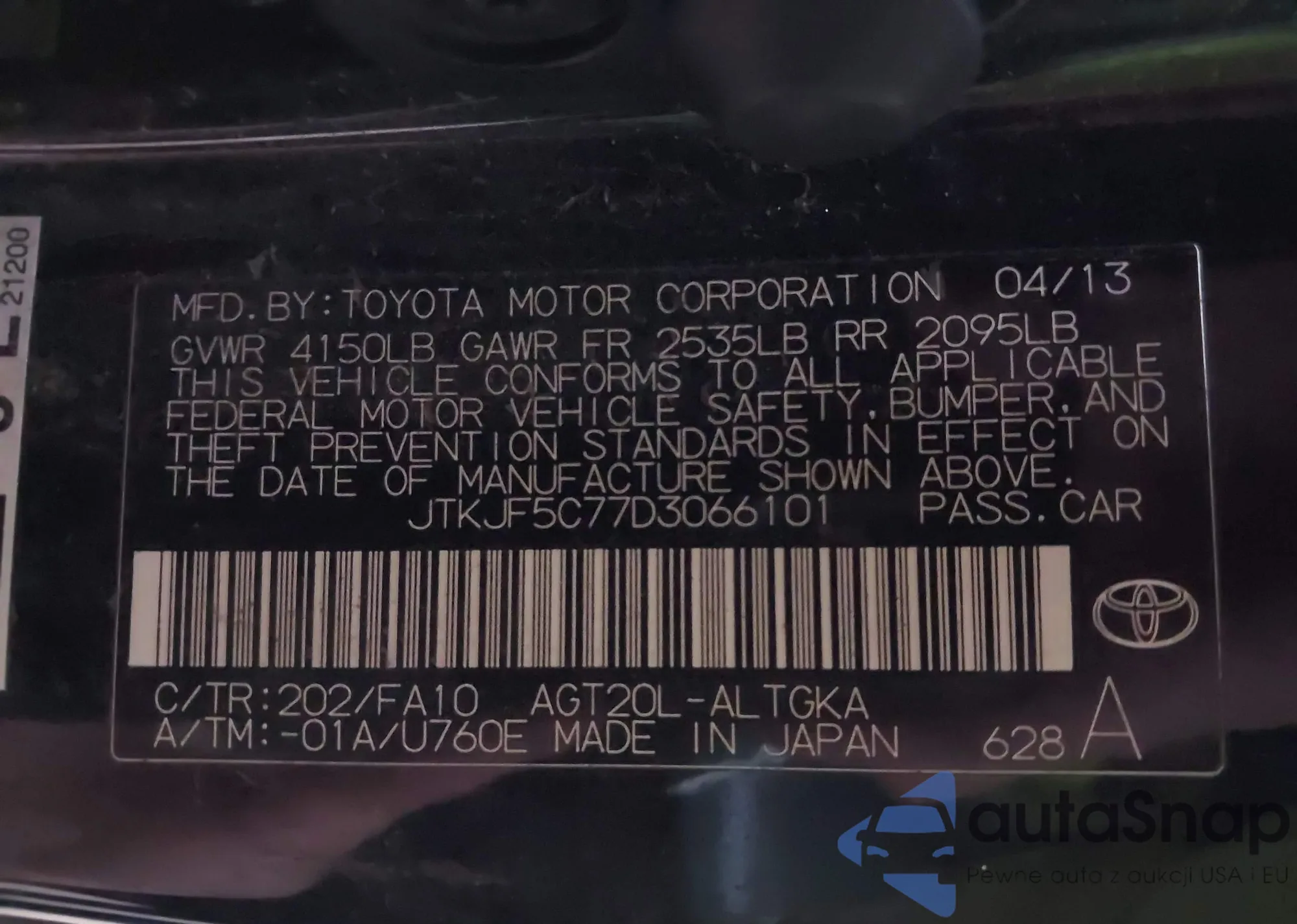 • VIN JTKJF5C77D3066101