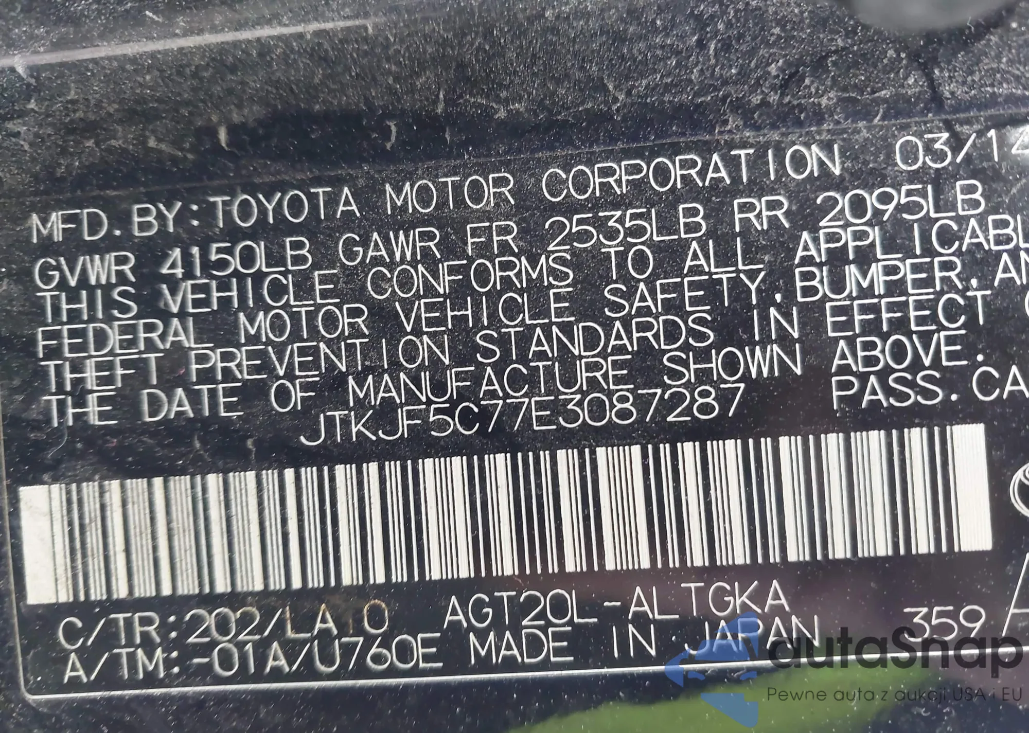 • VIN JTKJF5C77E3087287