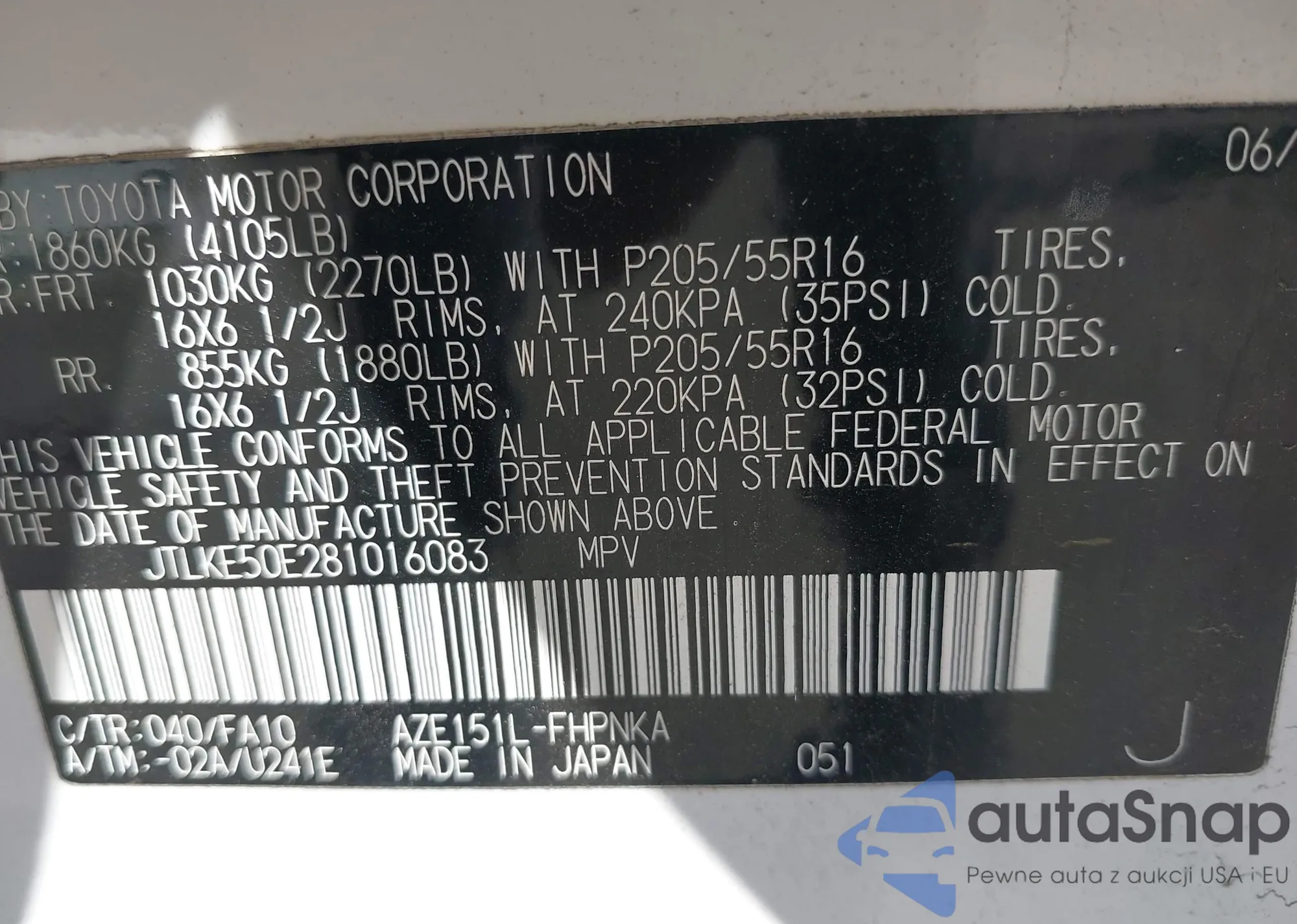 LOT: 44190174 VIN: JTLKE50E281016083