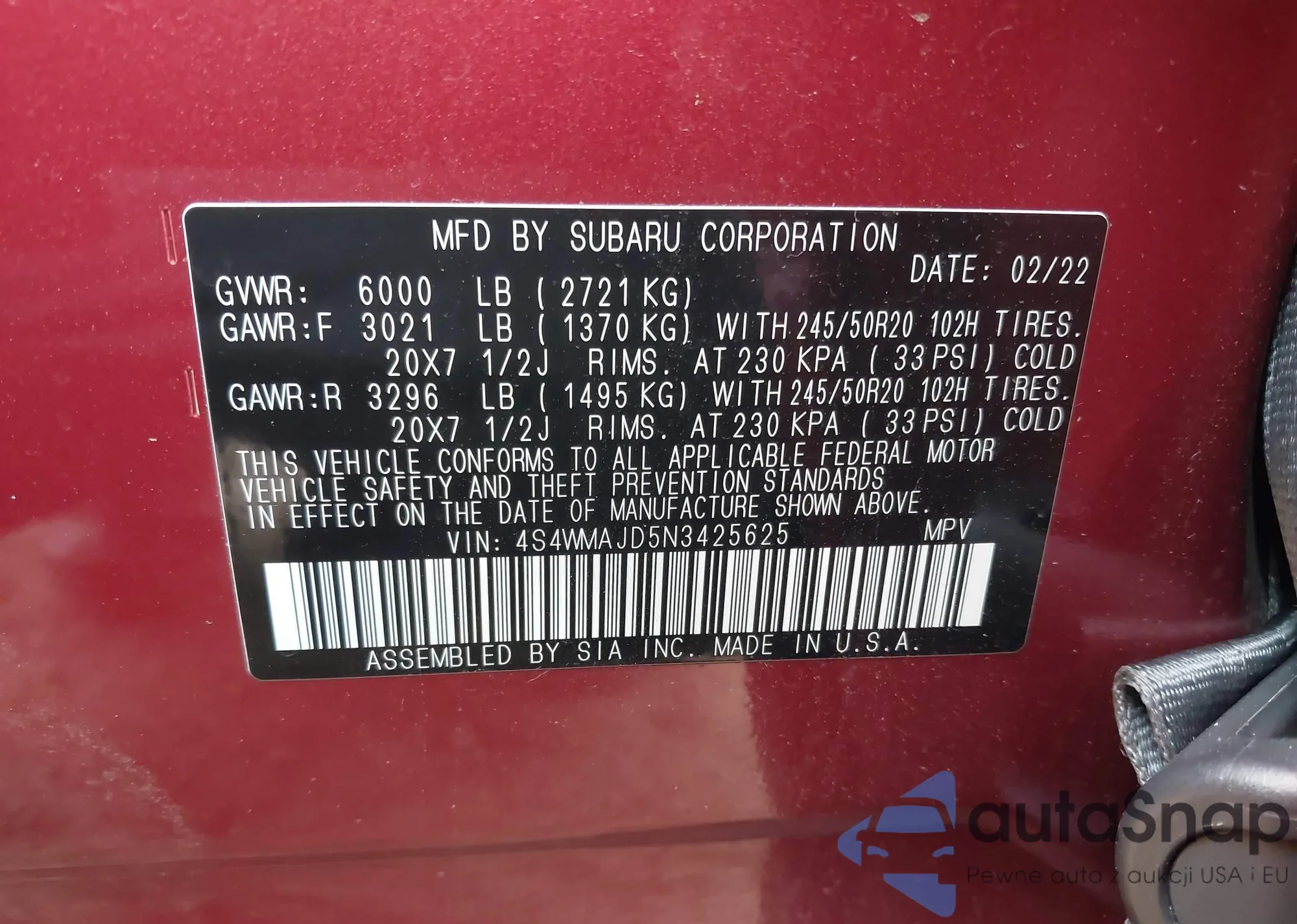 • VIN 4S4WMAJD5N3425625