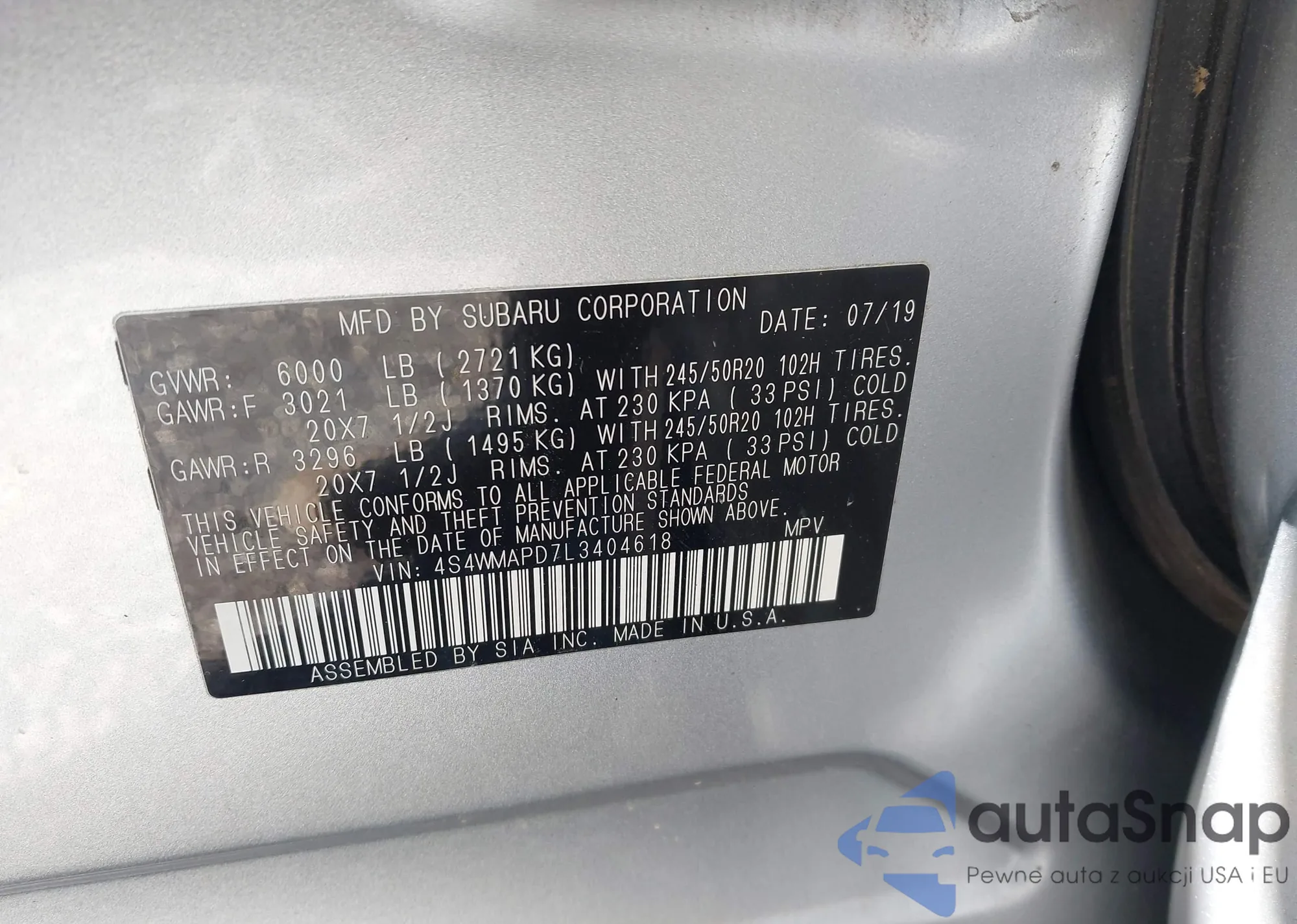• VIN 4S4WMAPD7L3404618