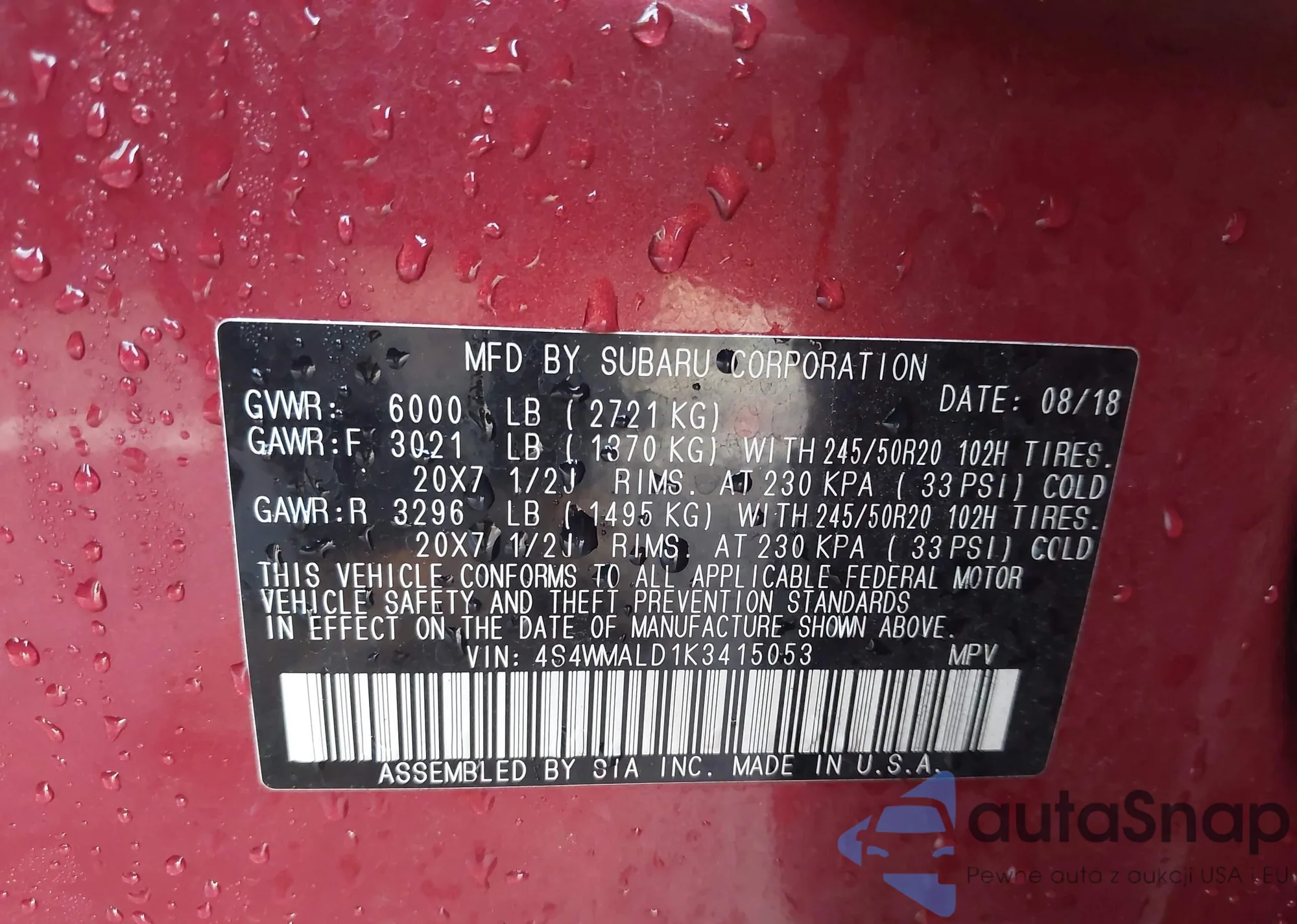 • VIN 4S4WMAPDXL3476252