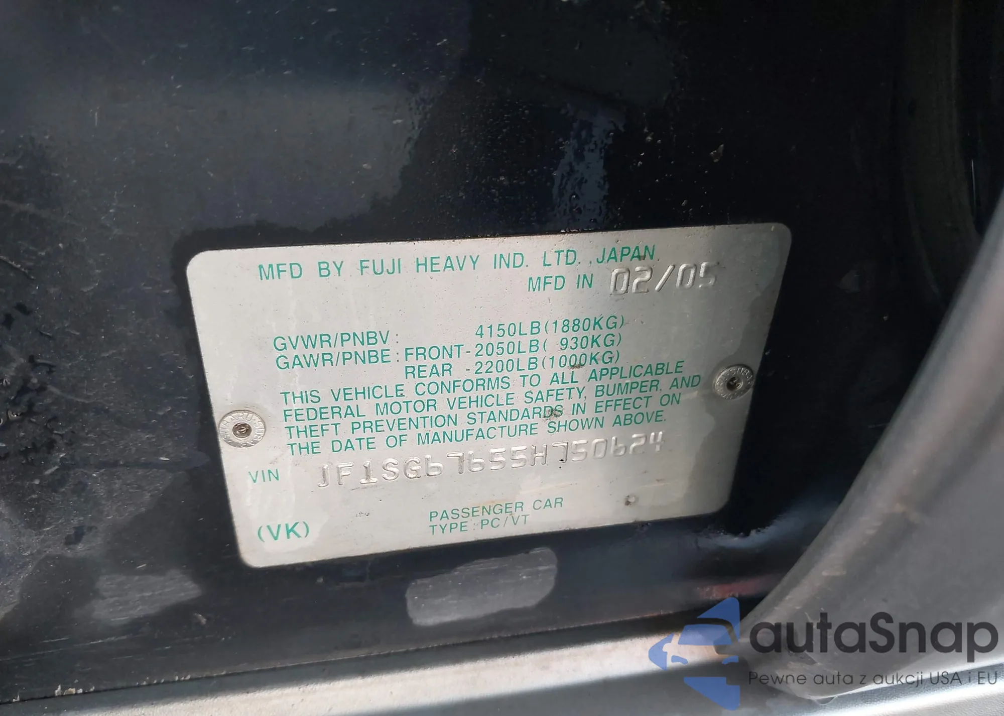 LOT: 44174750 VIN: JF1SG67655H750624