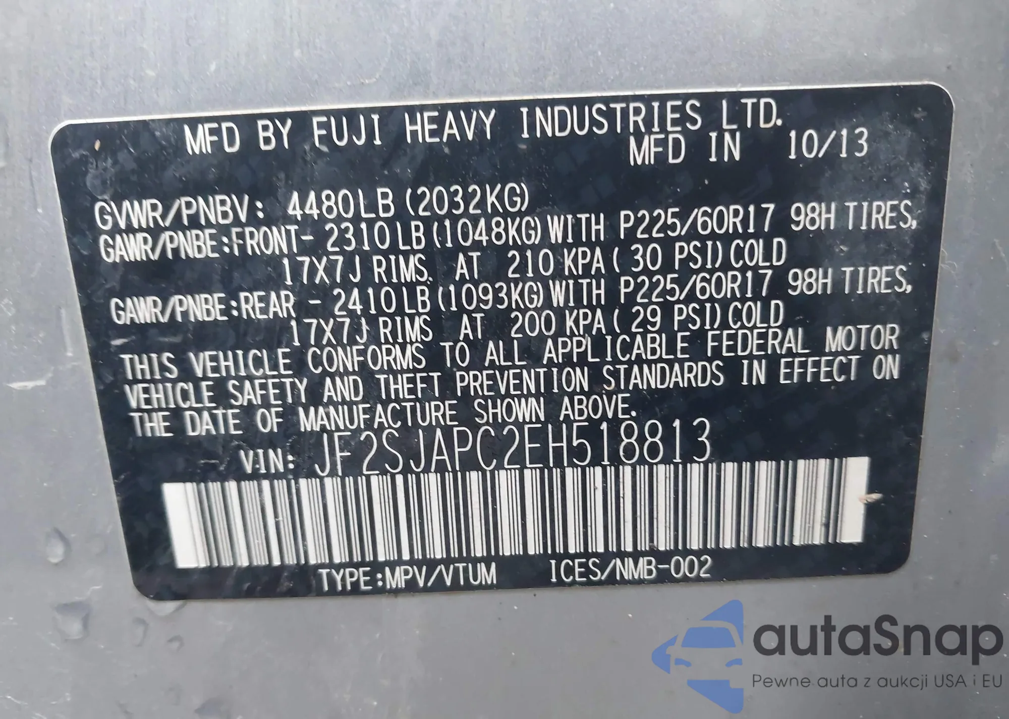 • VIN JF2SJAPC2EH518813
