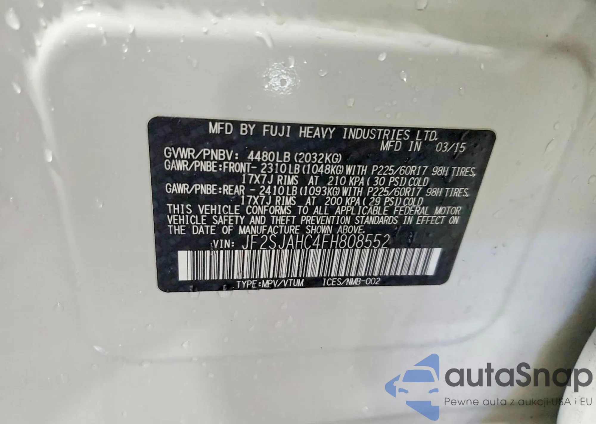 • VIN JF2SJAHC4FH808552
