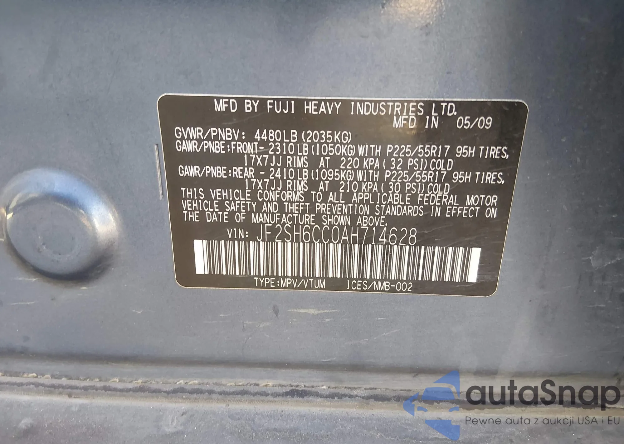LOT: 44376728 VIN: JF2SH6CC0AH714628