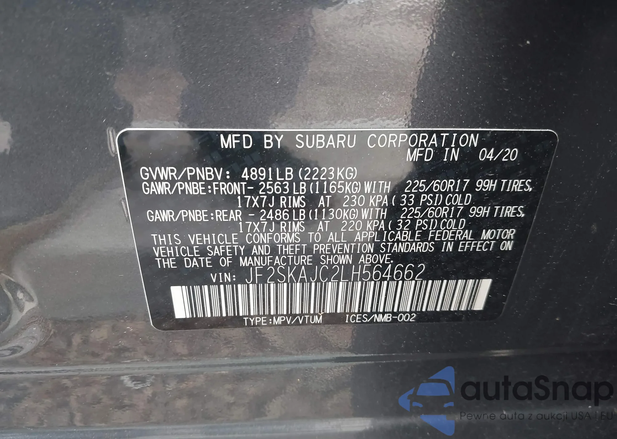 • VIN JF2SKAJC2LH564662