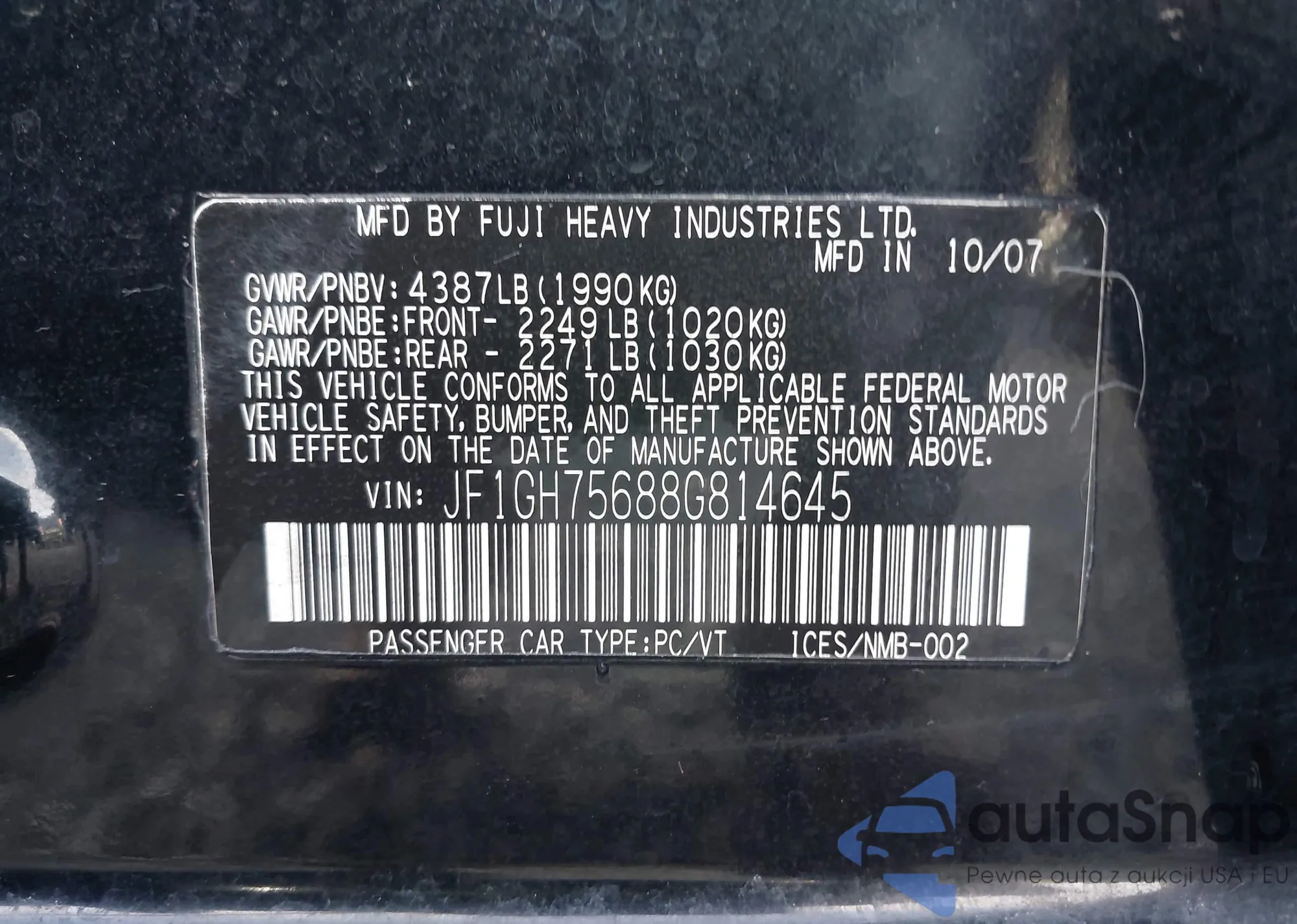 LOT: 43486906 VIN: JF1GH75688G814645