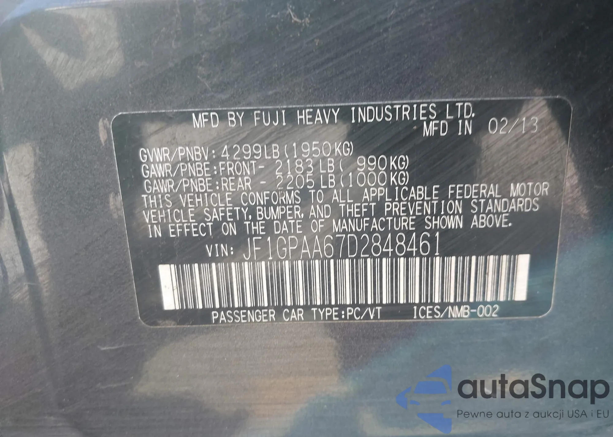 • VIN JF1GPAA67D2848461