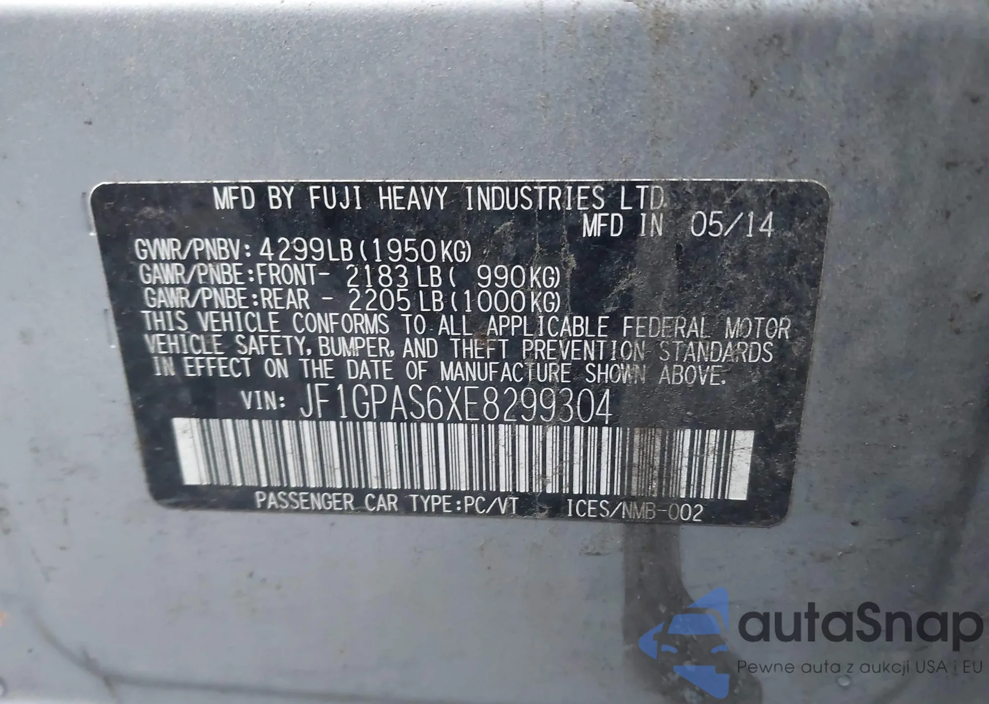 LOT: 44296554 VIN: JF1GPAS6XE8299304
