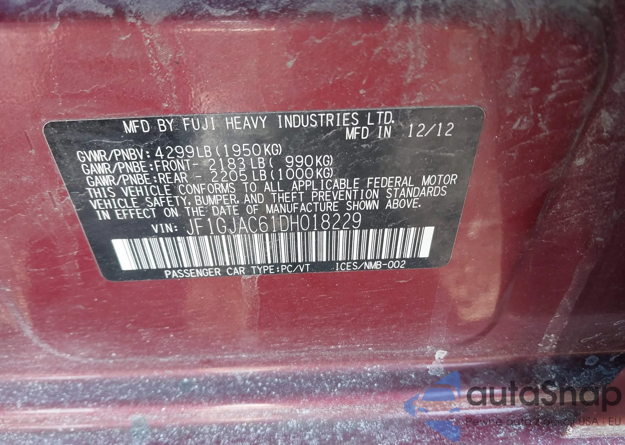 LOT: 44174542 VIN: JF1GJAC61DH018229