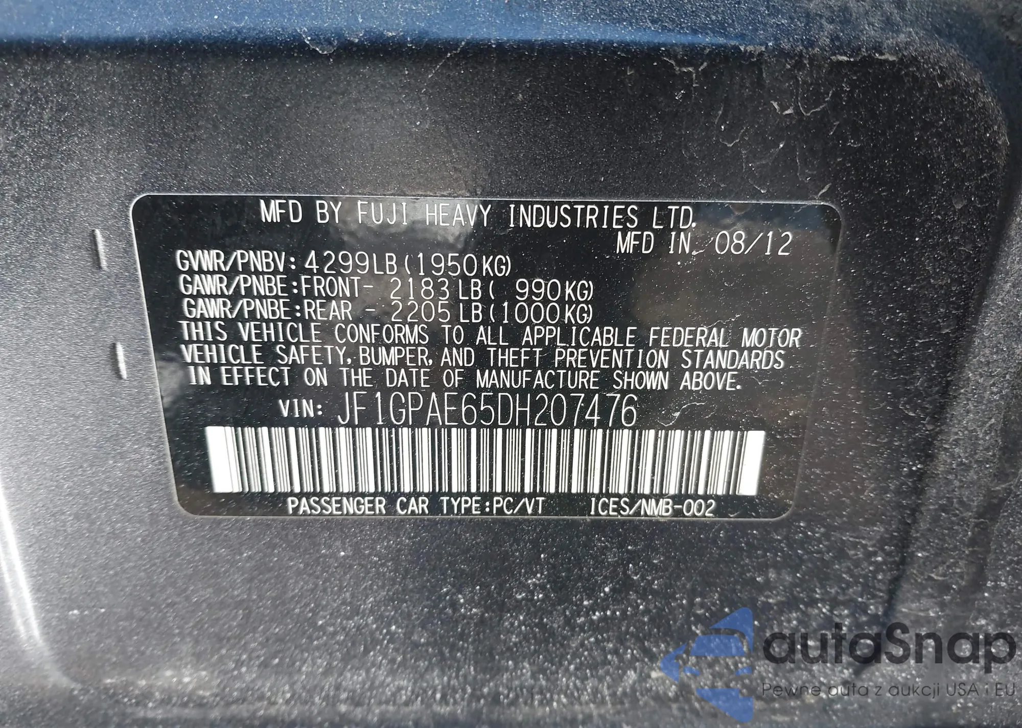 • VIN JF1GPAE65DH207476
