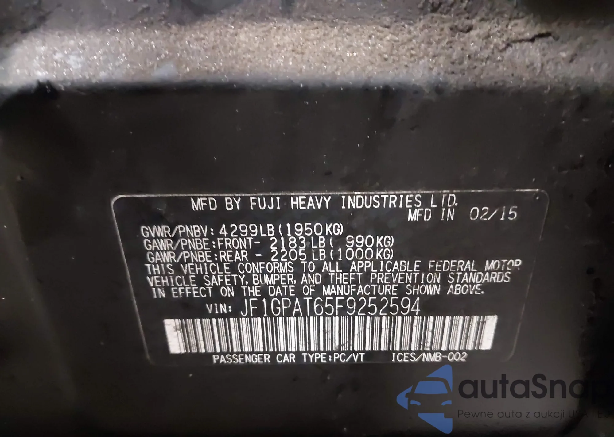 • VIN JF1GPAT65F9252594
