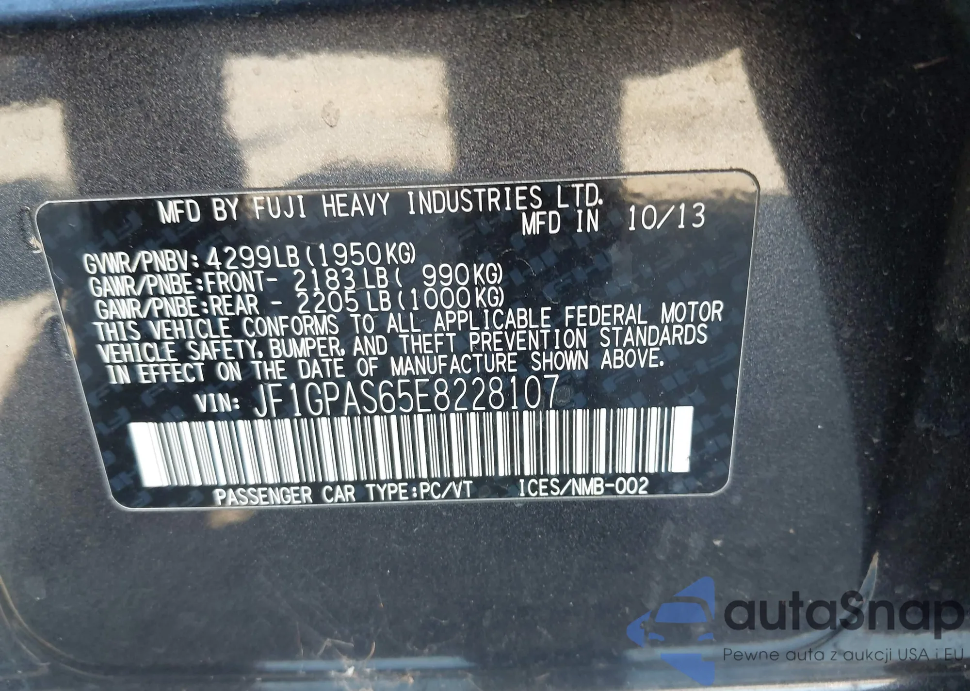LOT: 43800008 VIN: JF1GPAS65E8228107