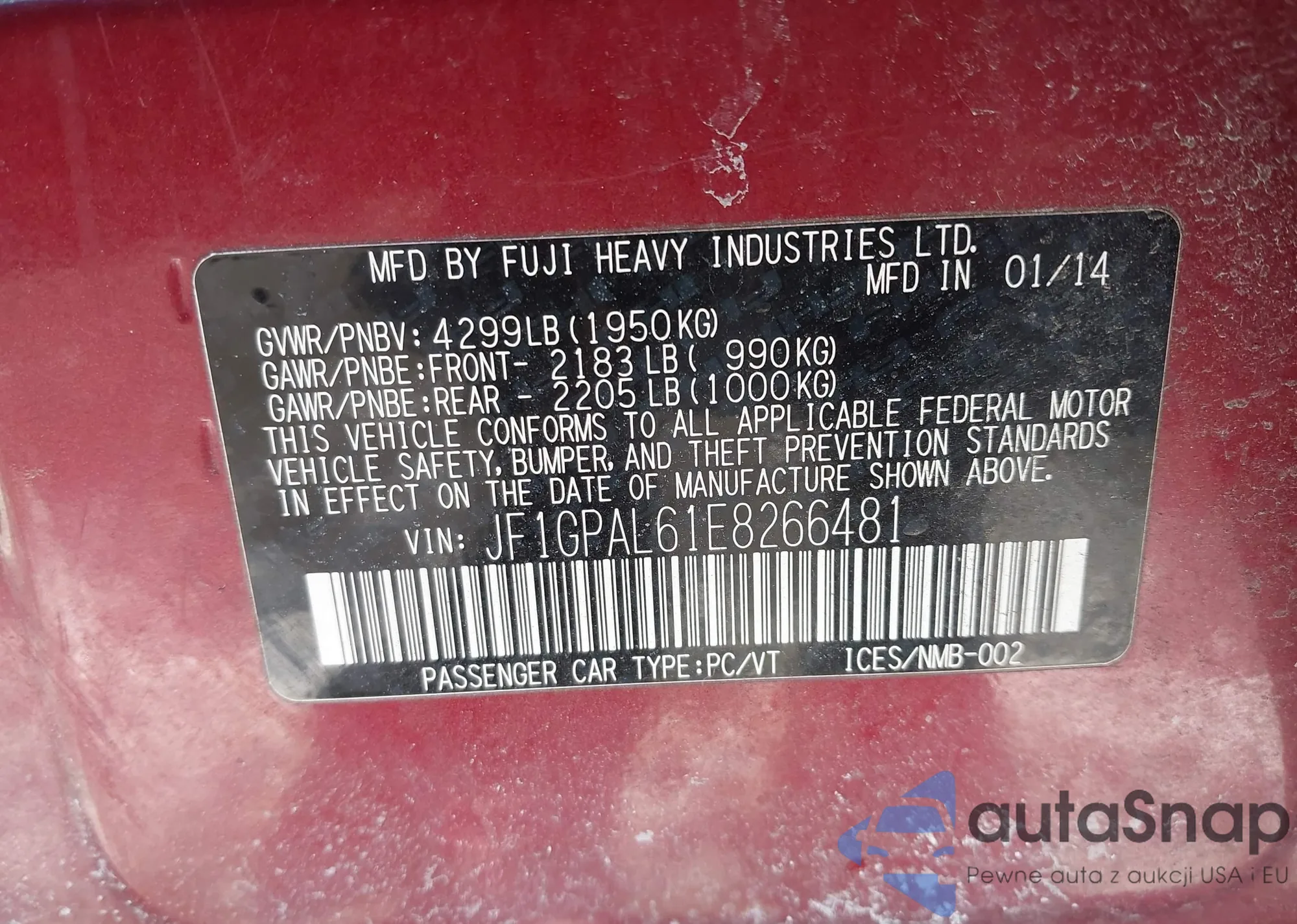• VIN JF1GPAL61E8266481