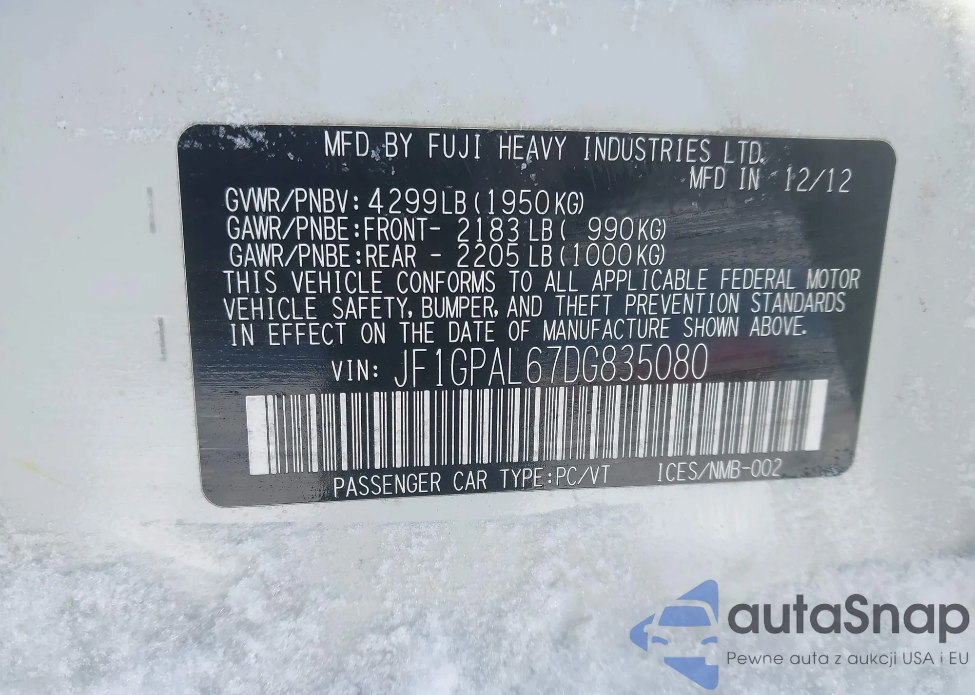 • VIN JF1GPAL67DG835080
