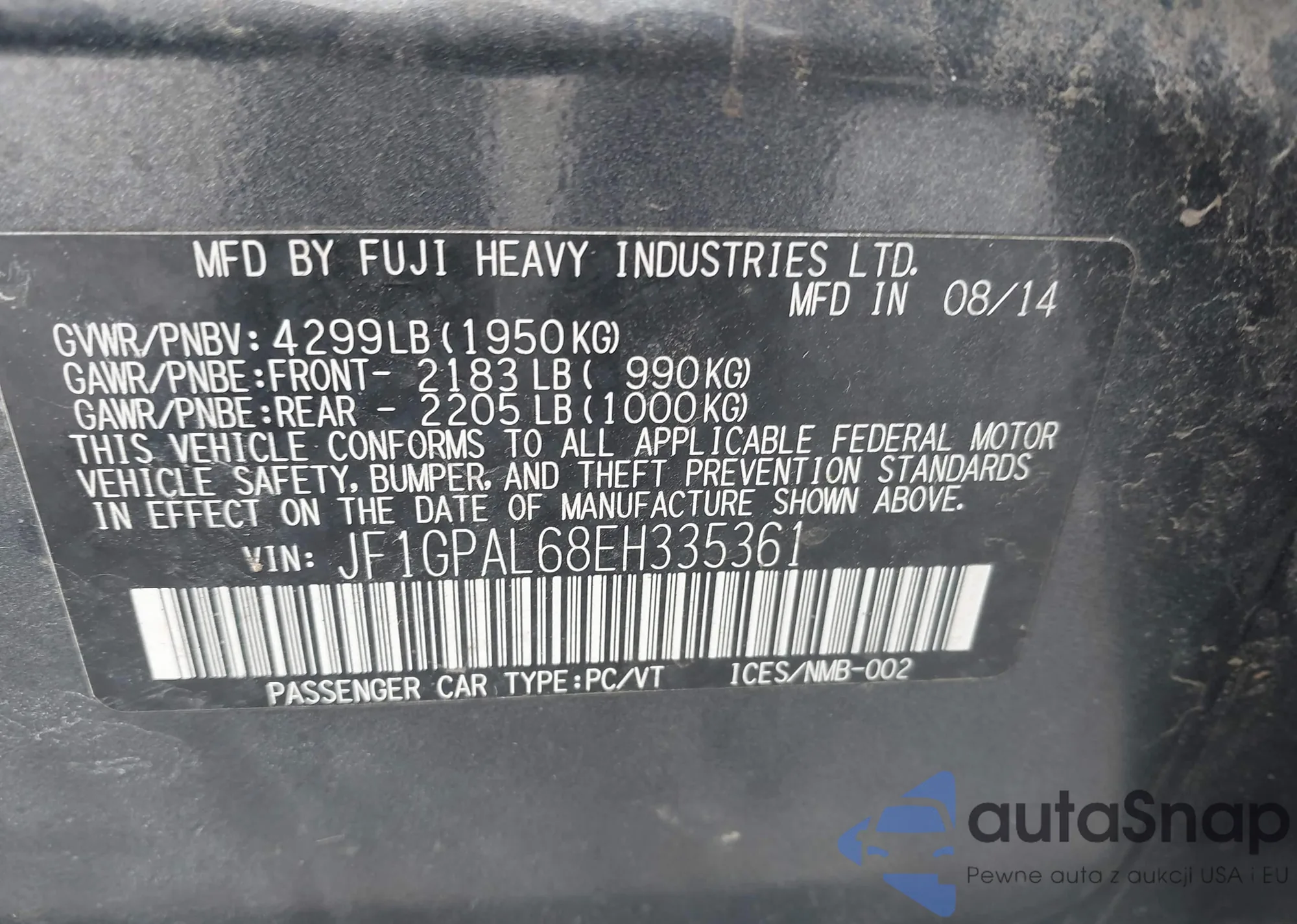 • VIN JF1GPAL68EH335361