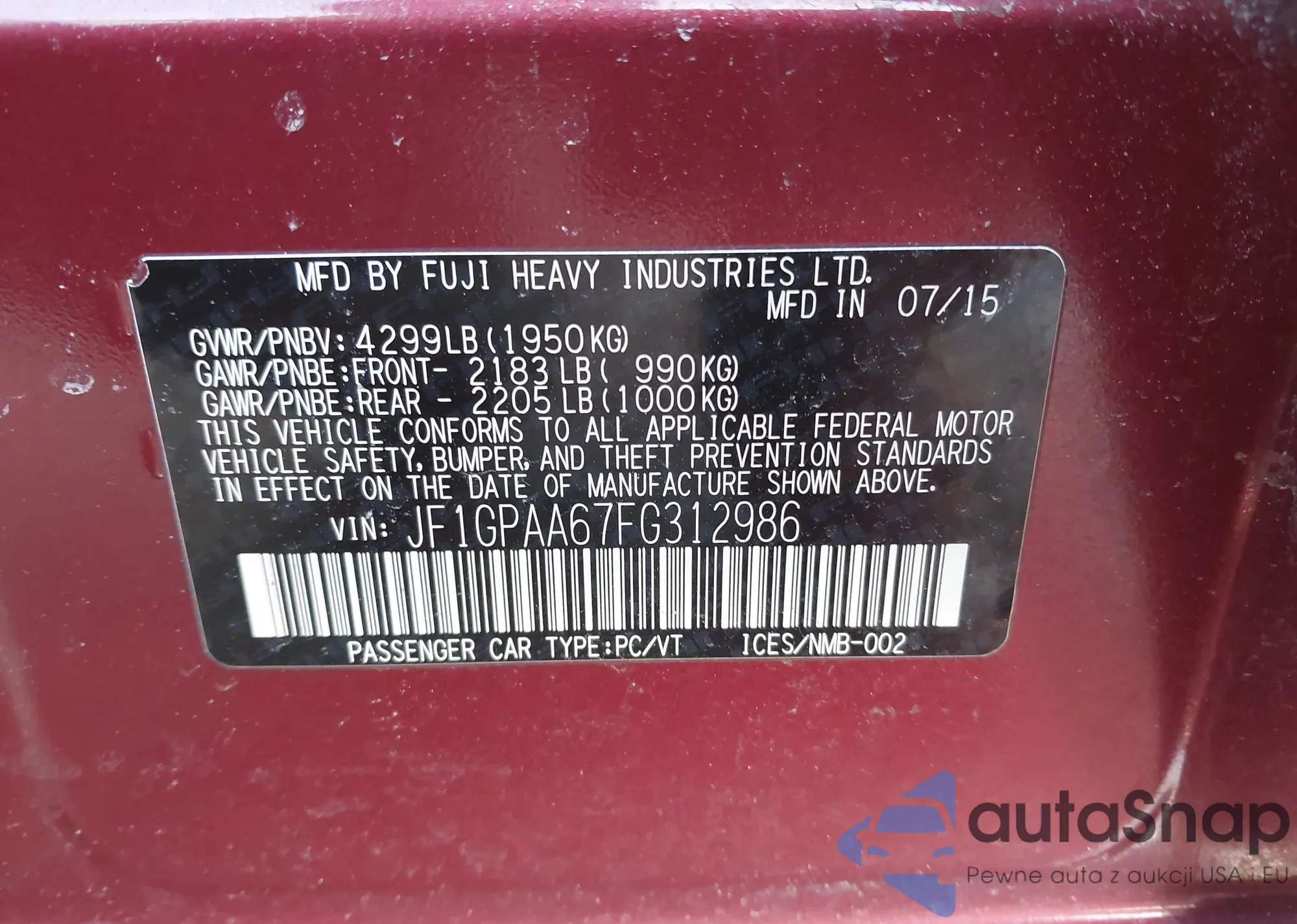 • VIN JF1GPAA67FG312986
