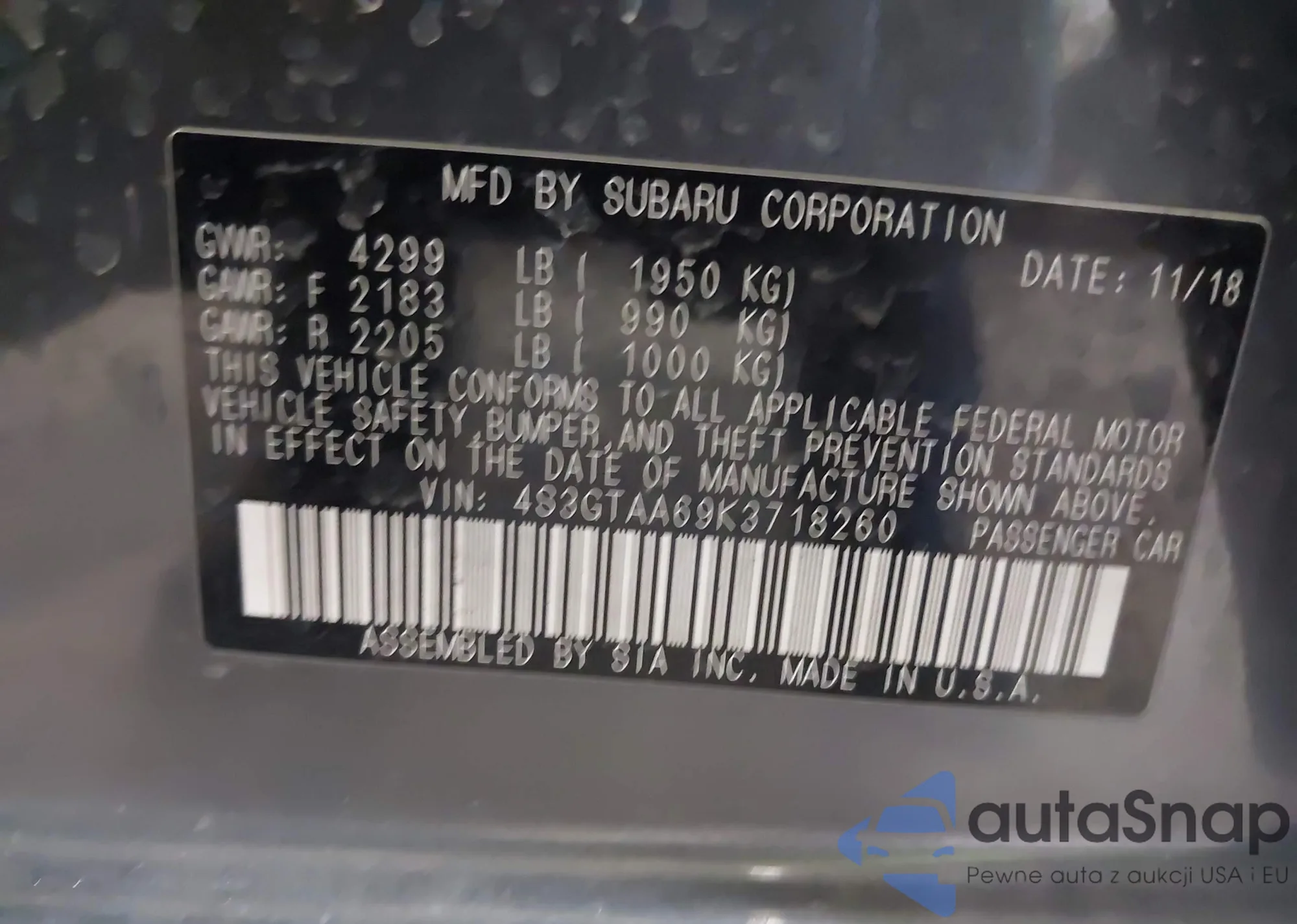 • VIN 4S3GTAA69K3718260
