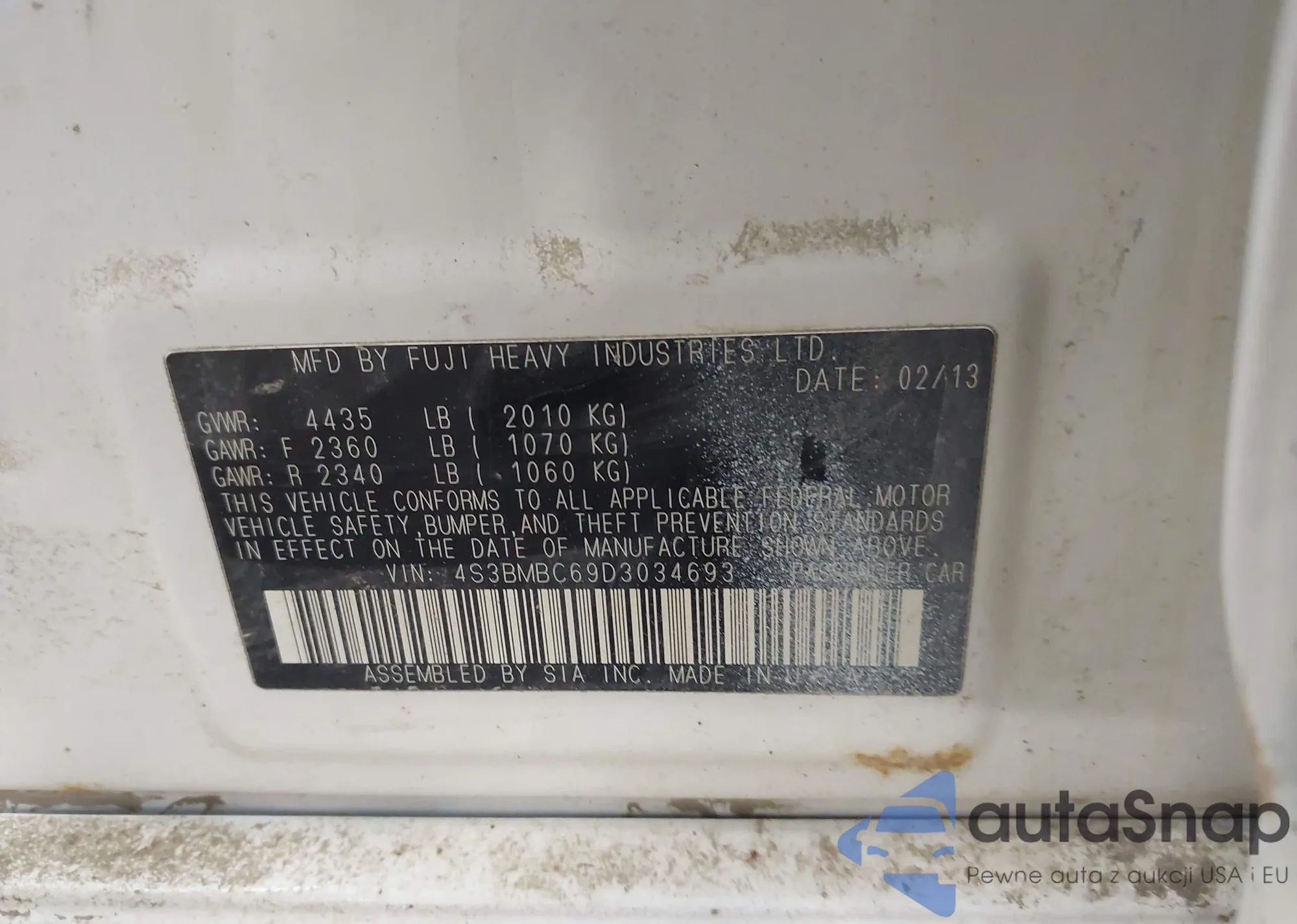 LOT: 44053946 VIN: 4S3BMBC69D3034693