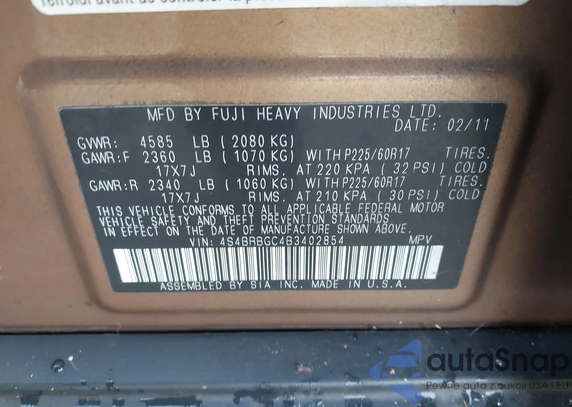 • VIN 4S4BRBGC4B3402854