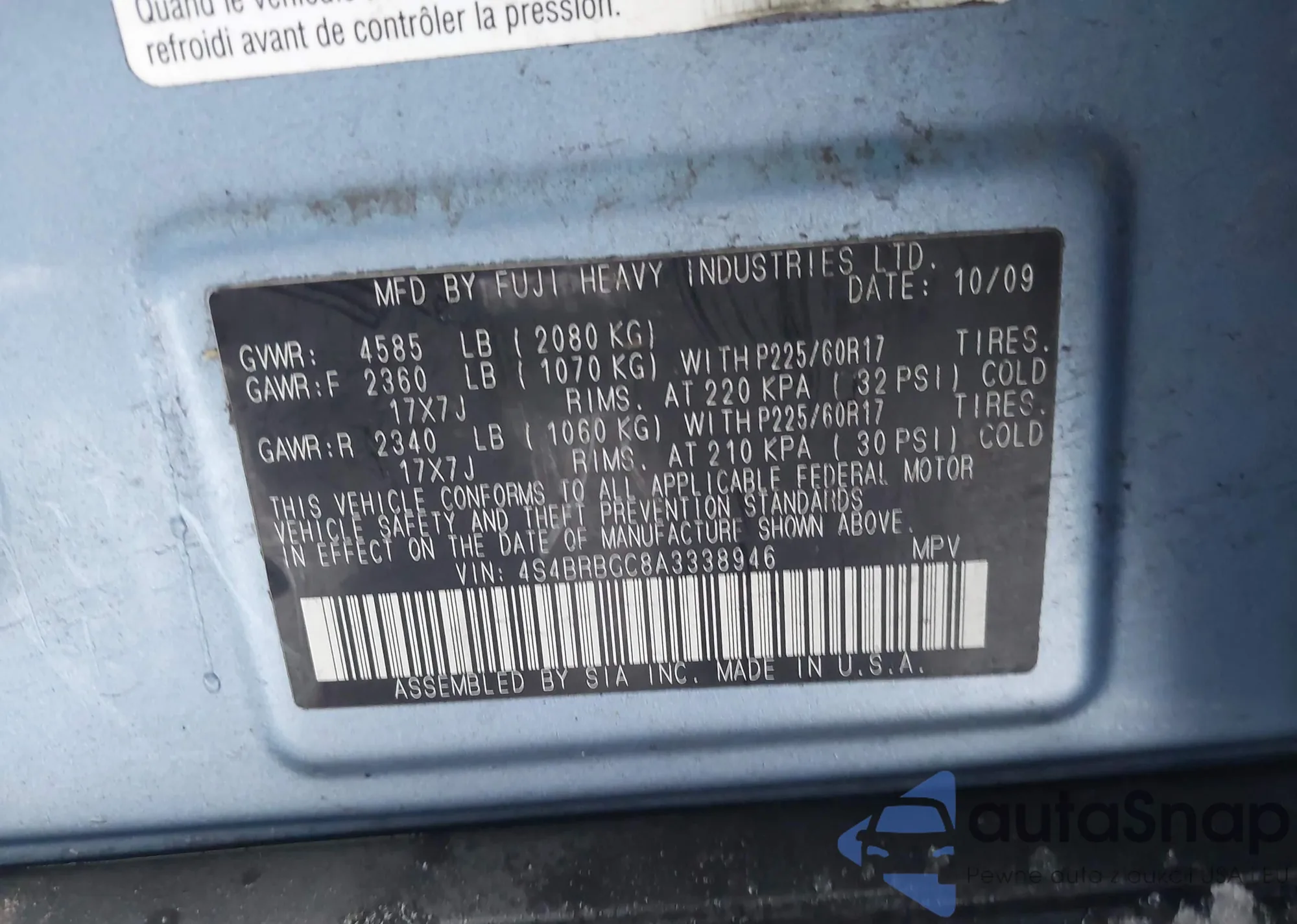 • VIN 4S4BRBGC8A3338946