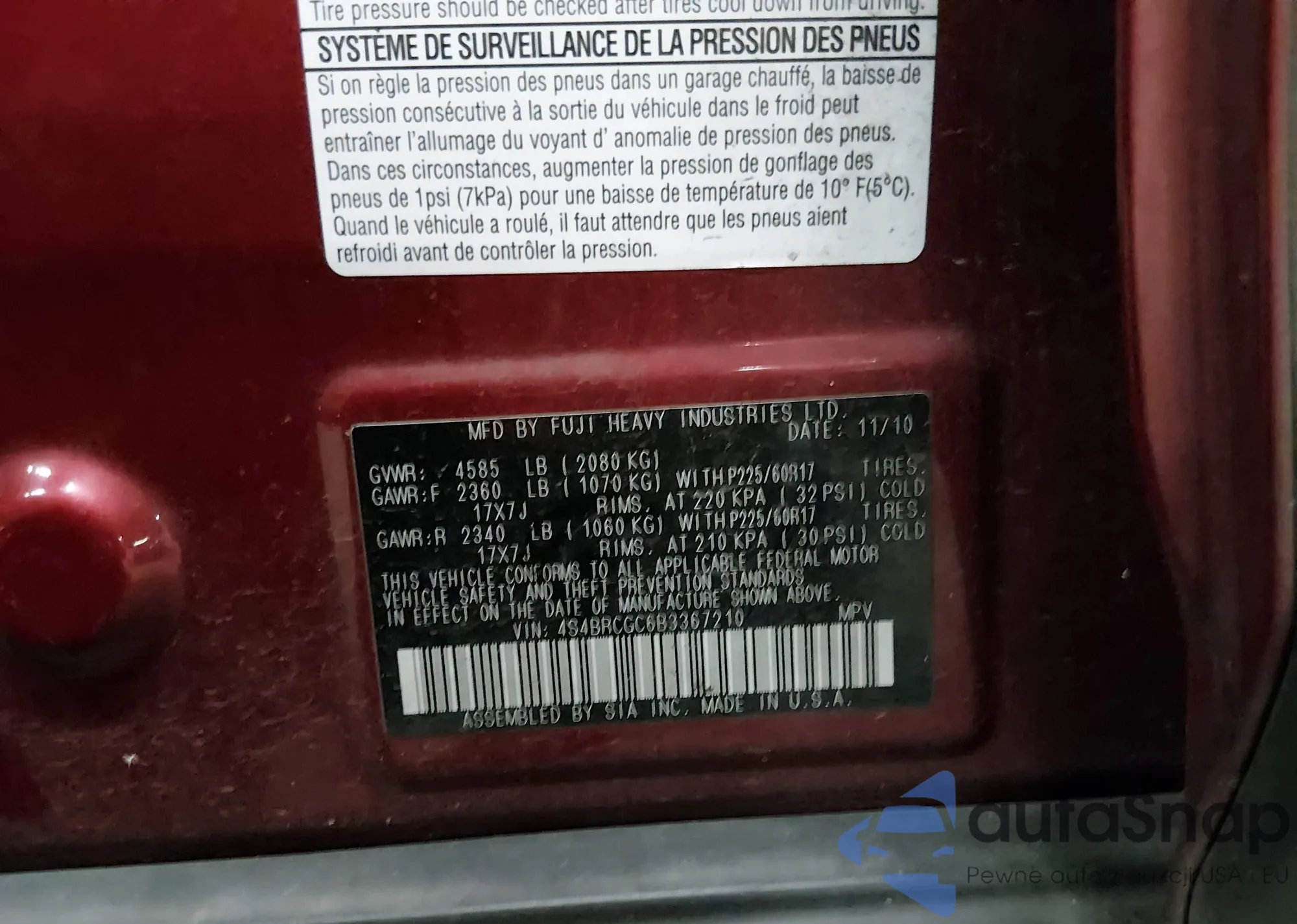 • VIN 4S4BRCGC6B3367210