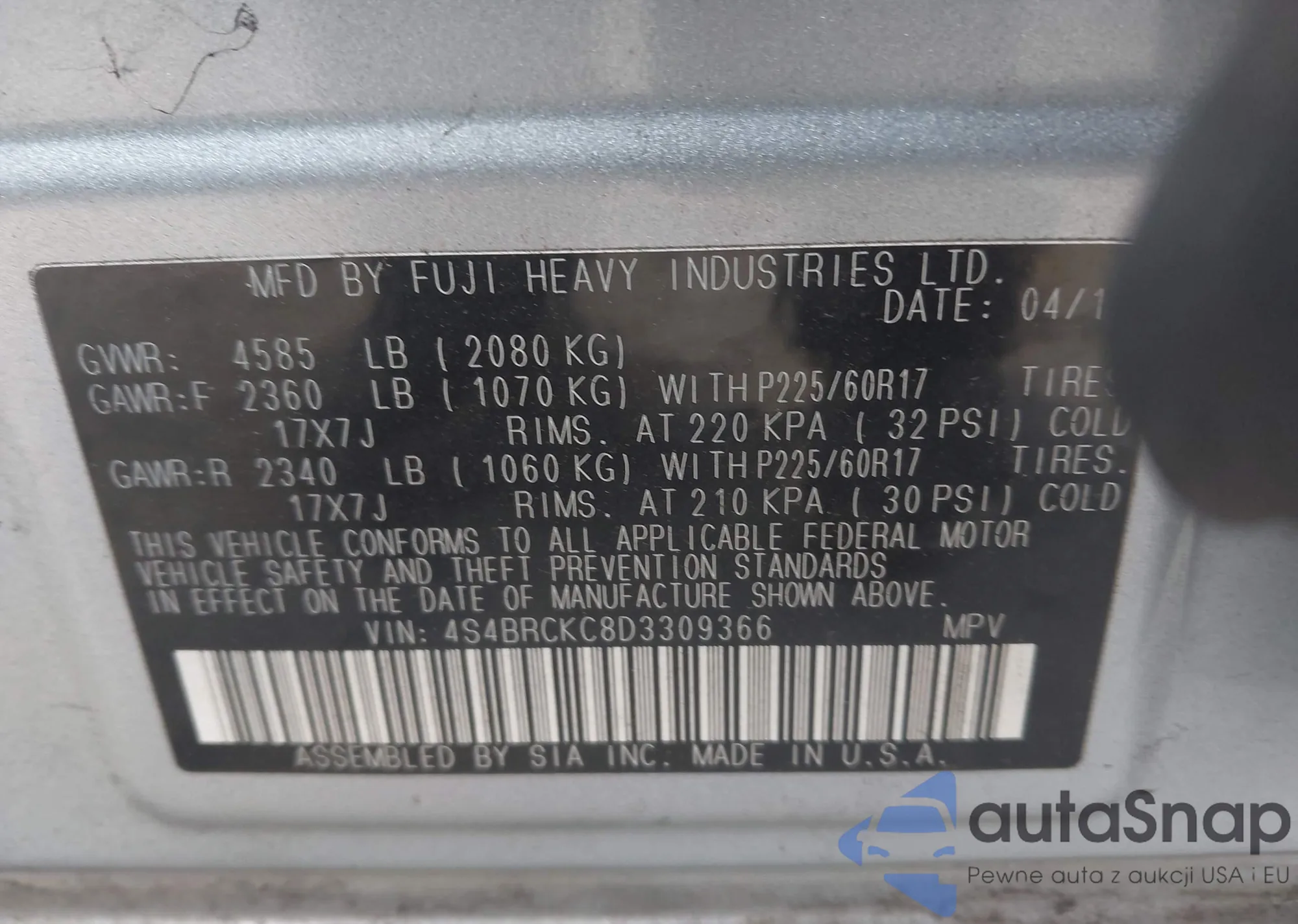 LOT: 44100209 VIN: 4S4BRCKC8D3309366