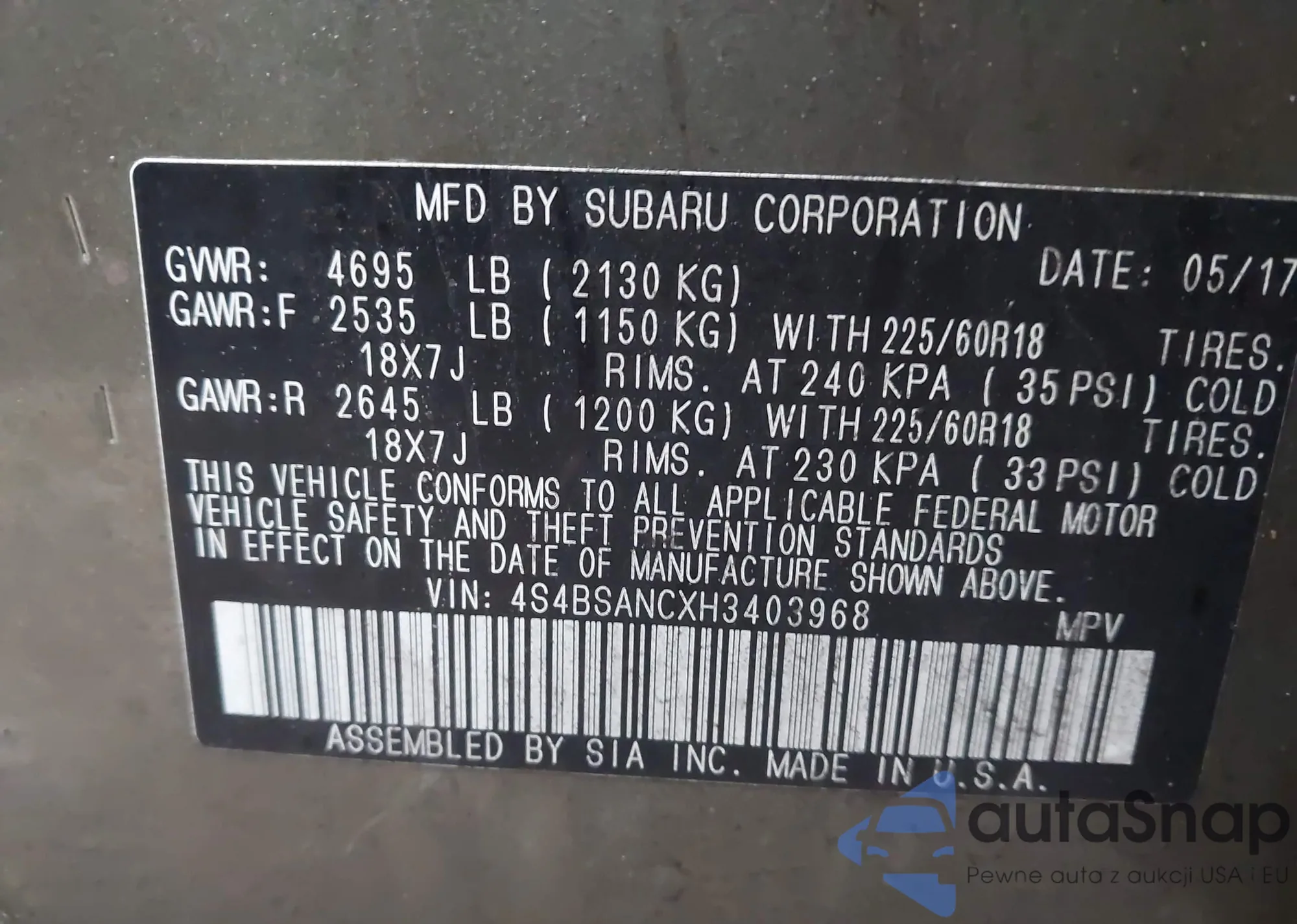 • VIN 4S4BSANCXH3403968