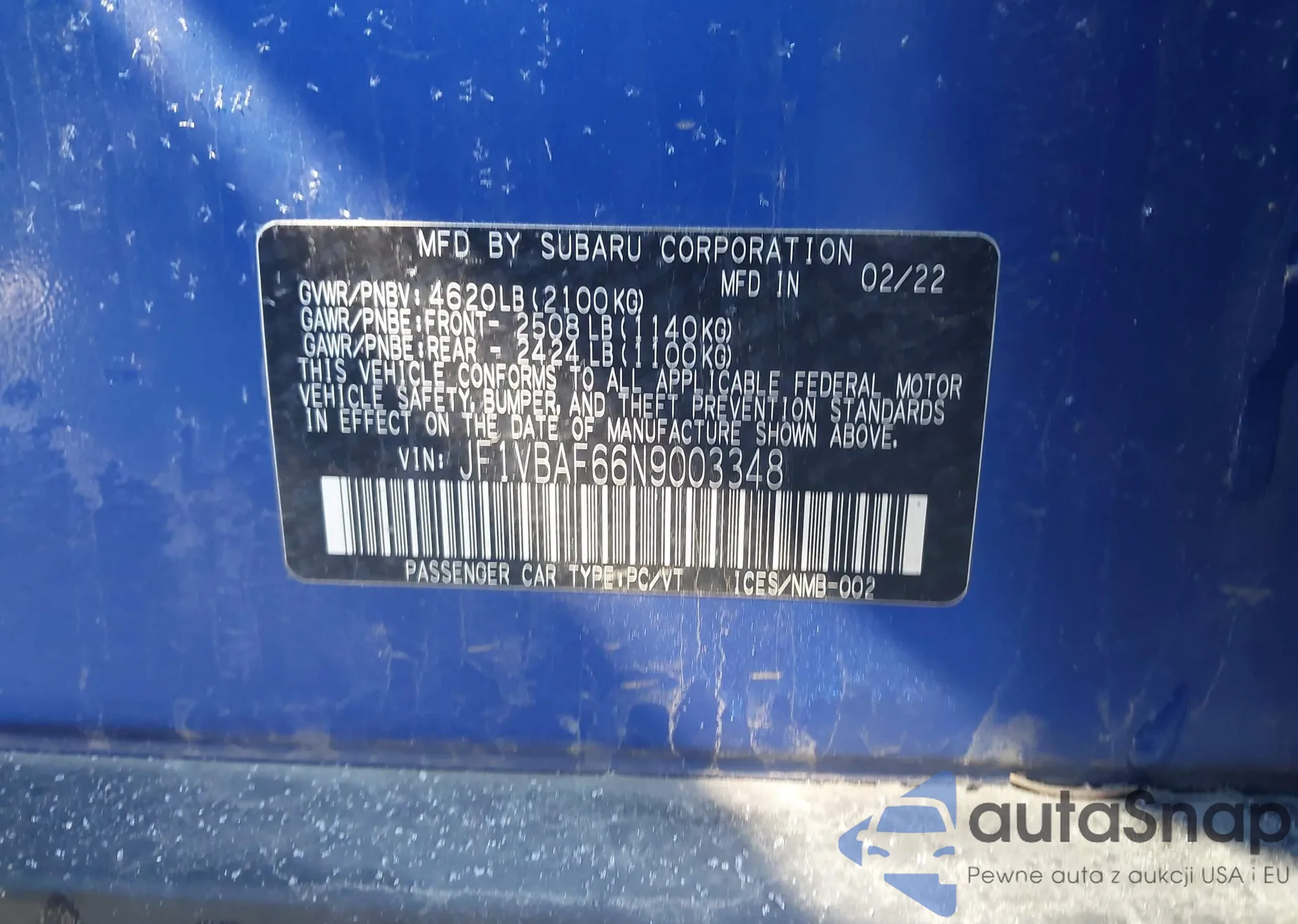 LOT: 44192657 VIN: JF1VBAF66N9003348