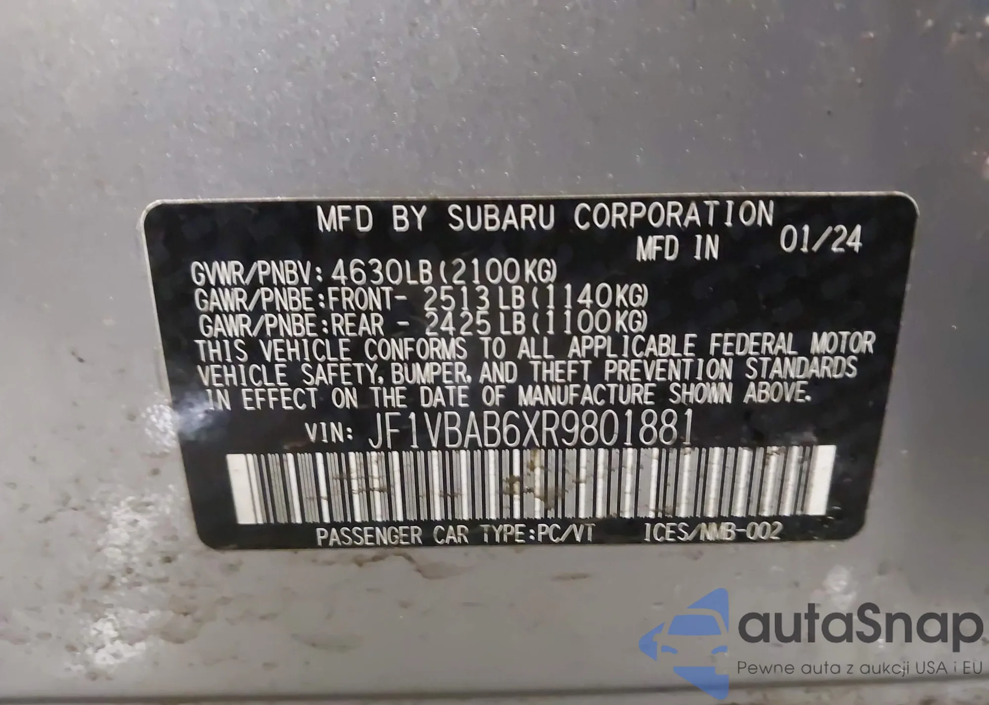 • VIN JF1VBAB6XR9801881