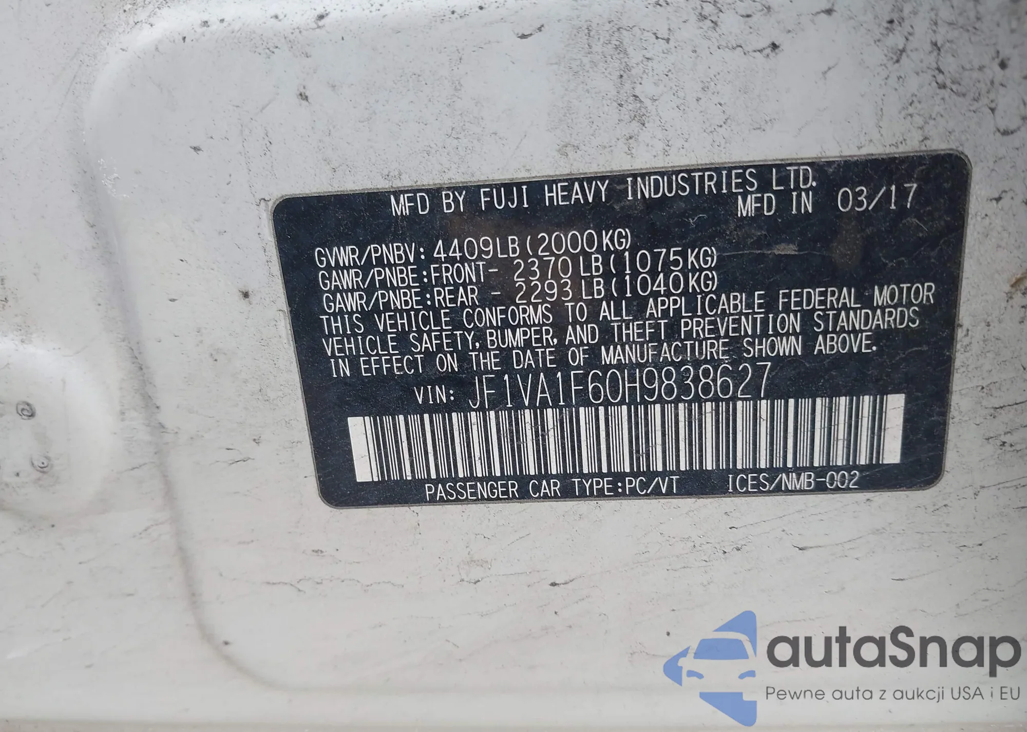 • VIN JF1VA1F60H9838627