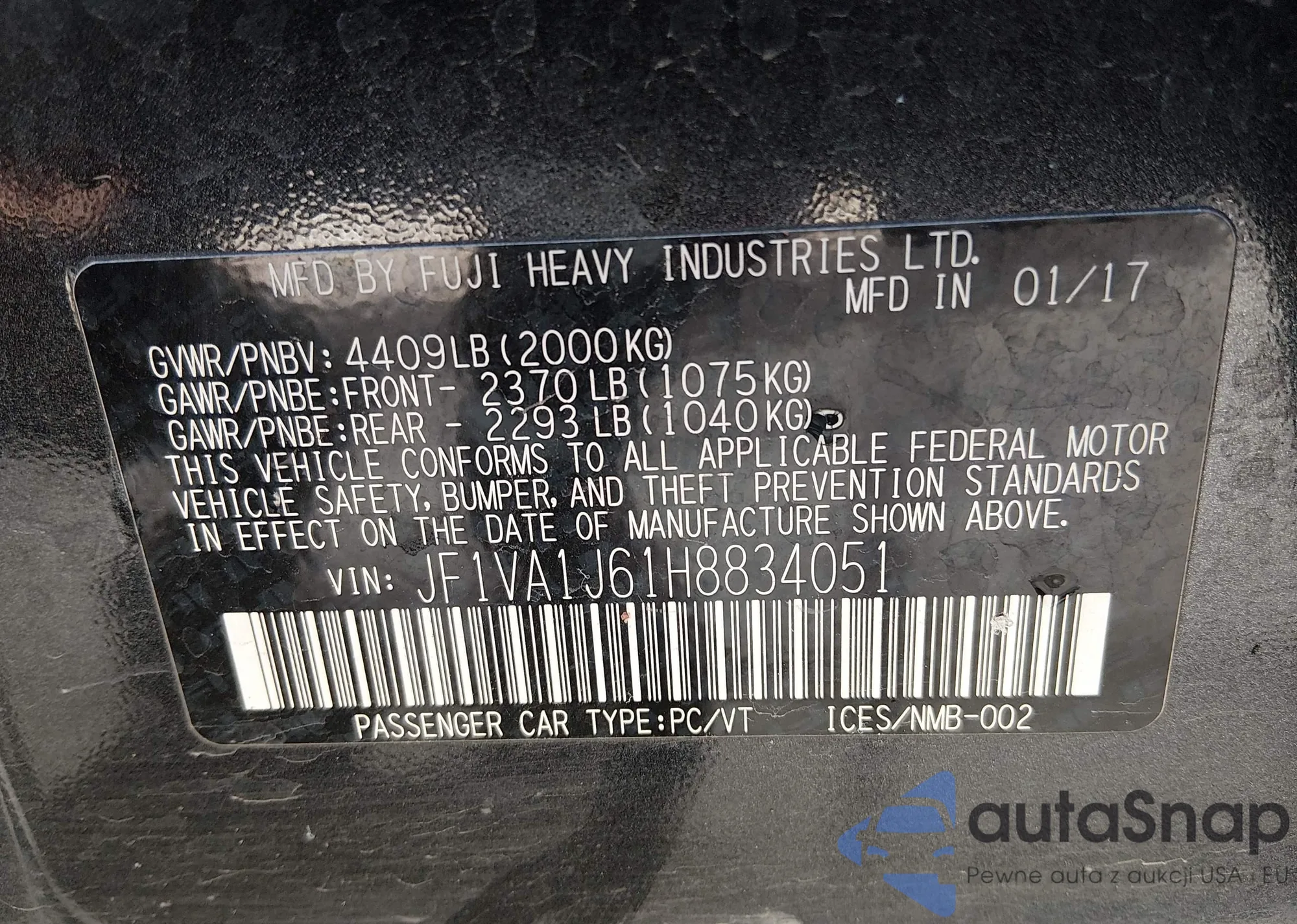 LOT: 44303096 VIN: JF1VA1B69H9816650