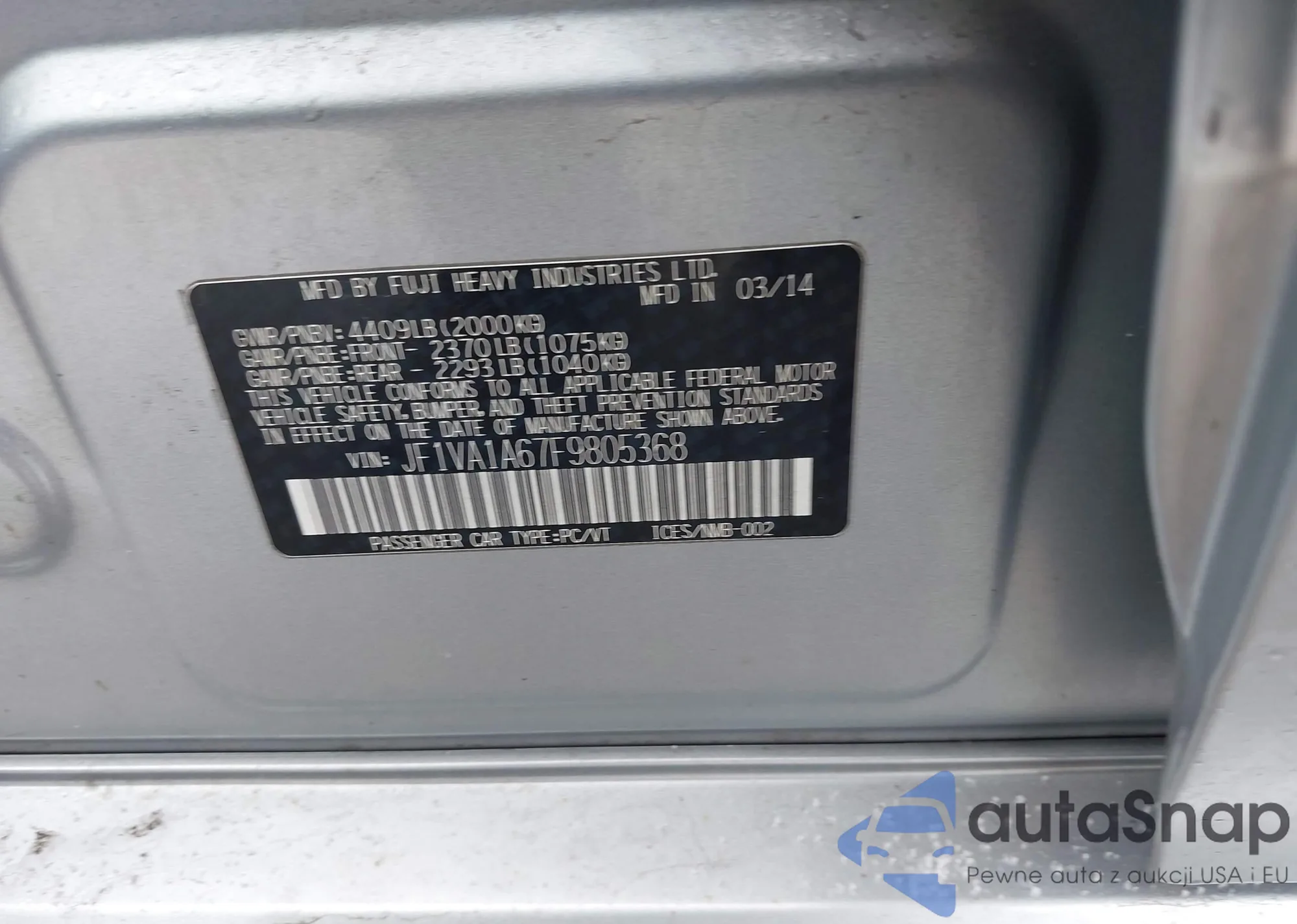 LOT: 44321499 VIN: JF1VA1A67F9805368