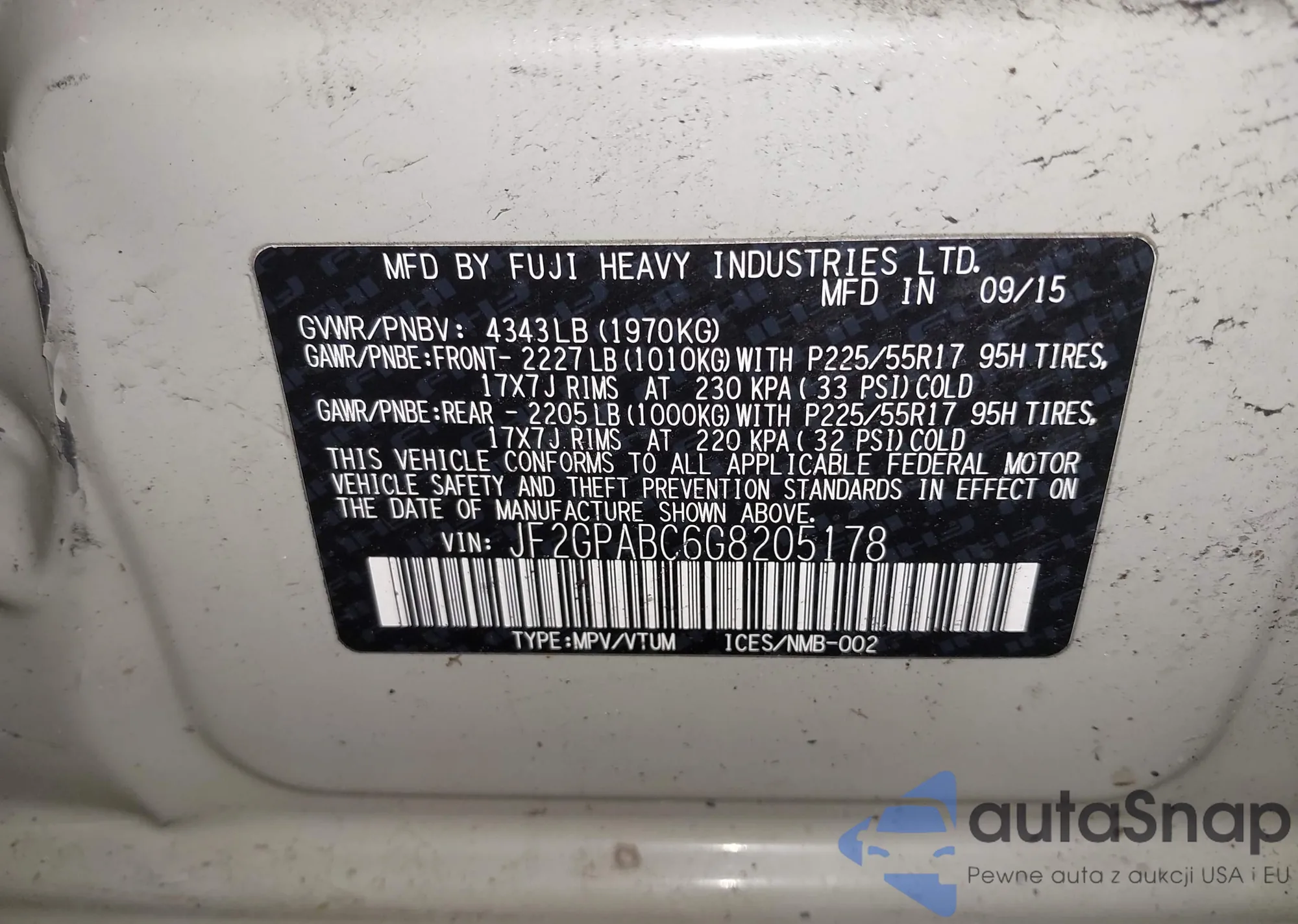 LOT: 43962032 VIN: JF2GPABC6G8205178
