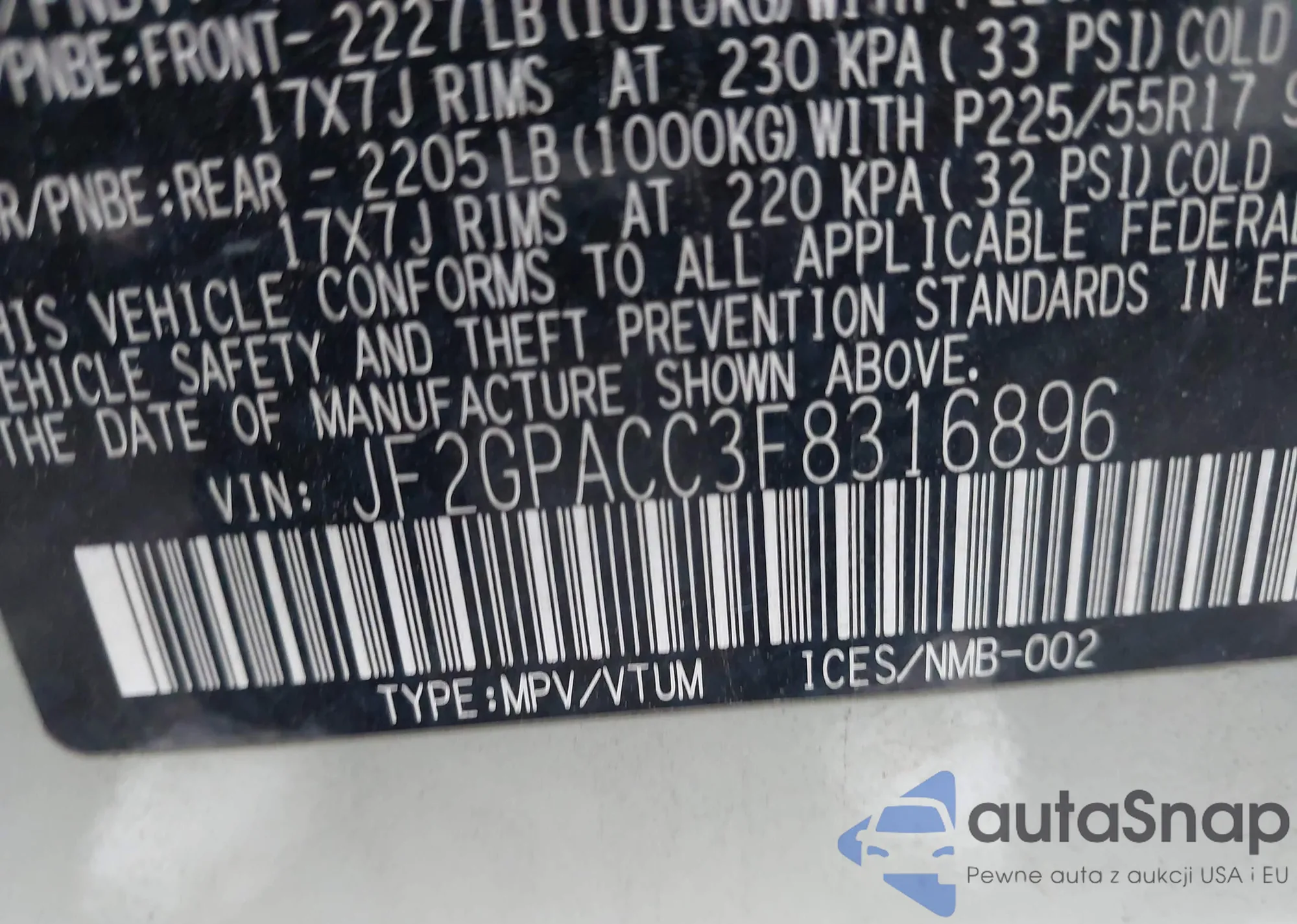 • VIN JF2GPACC3F8316896