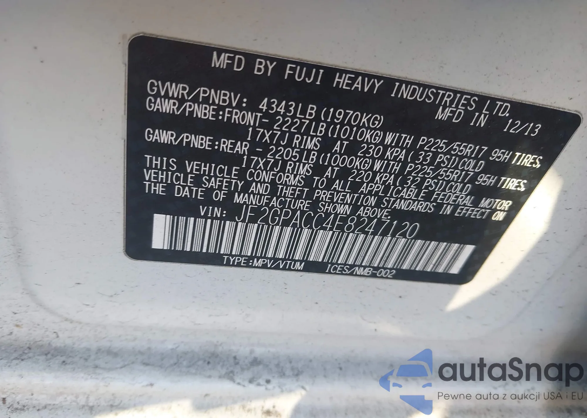 LOT: 44108896 VIN: JF2GPACC4E8247120