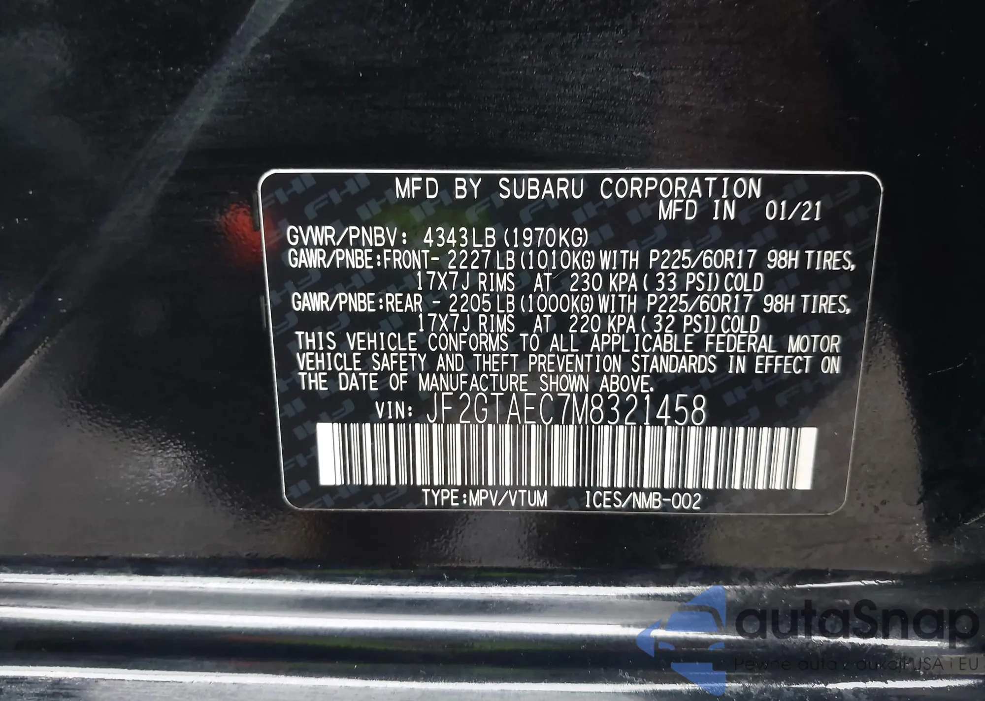 • VIN JF2GTAEC7M8321458