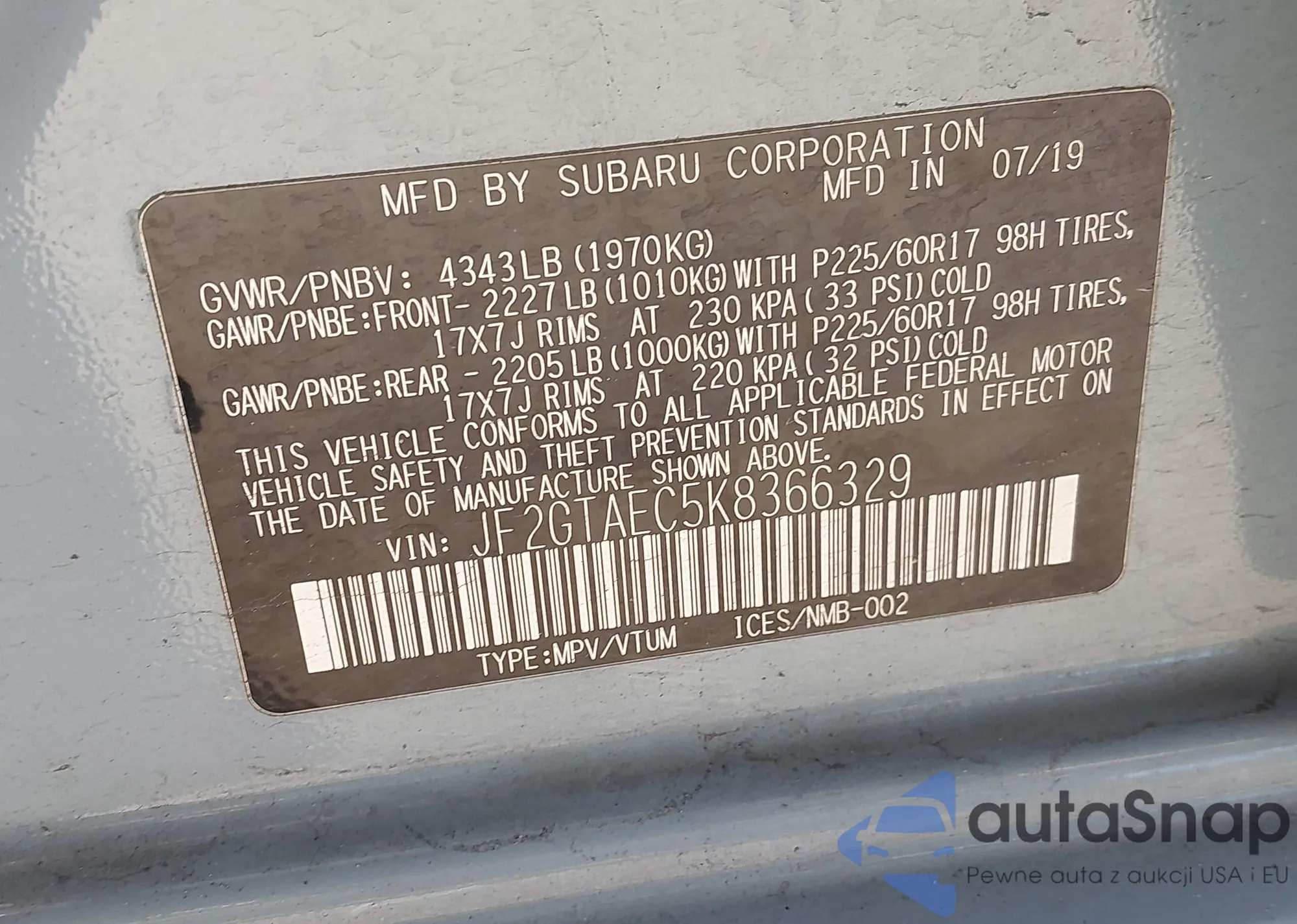 • VIN JF2GTAEC5K8366329
