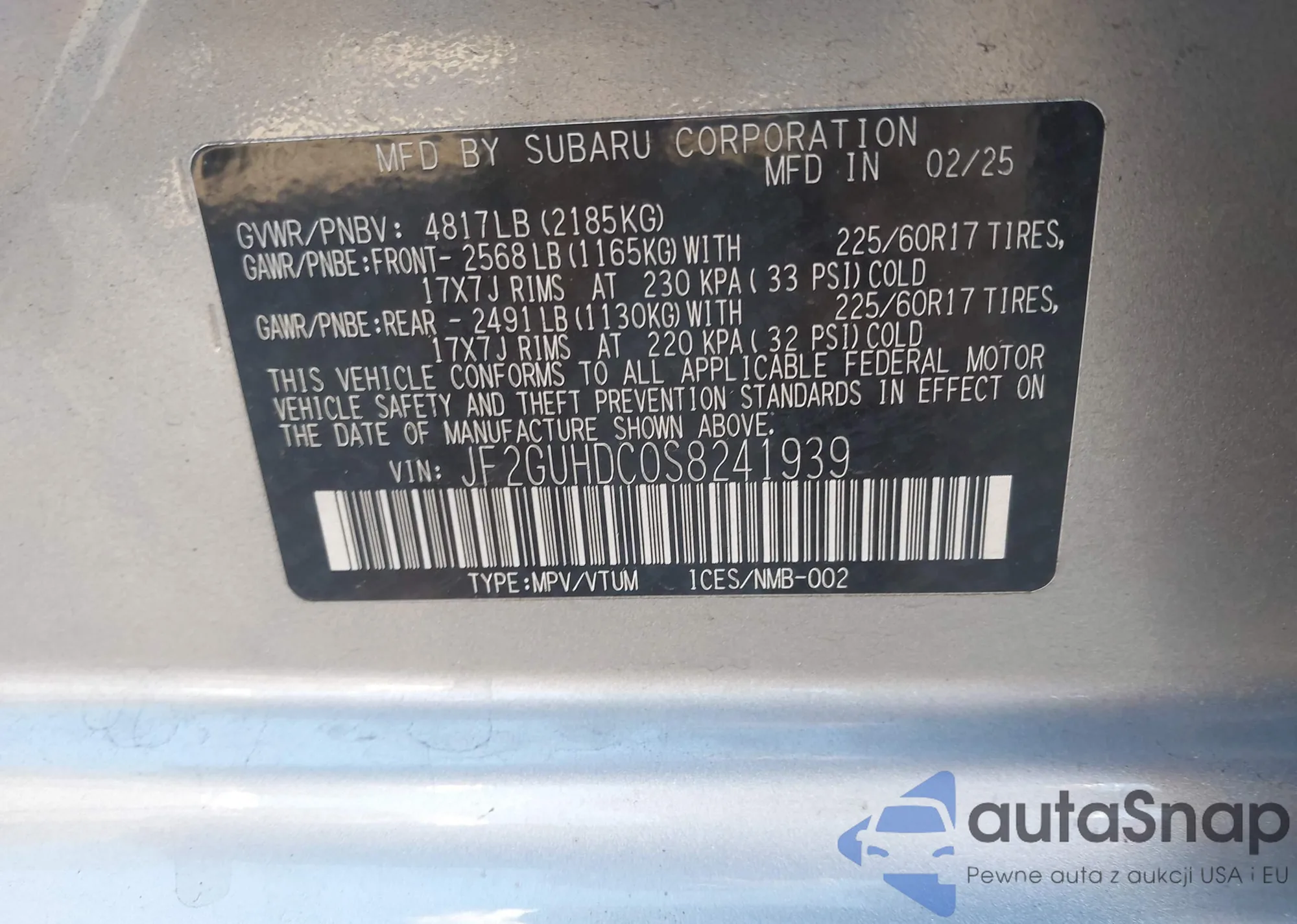 • VIN JF2GUHDC0S8241939