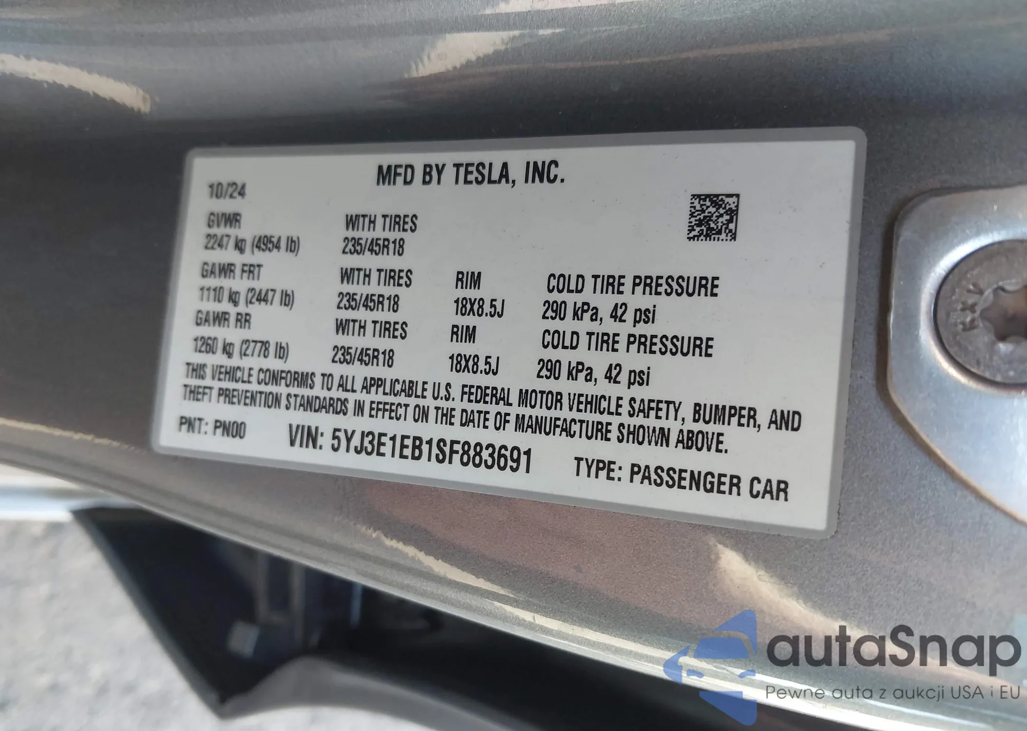 • VIN 5YJ3E1EB1SF883691