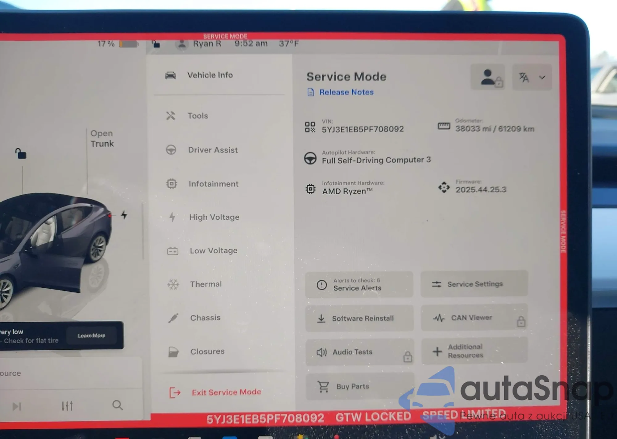 • VIN 5YJ3E1EA1KF300110