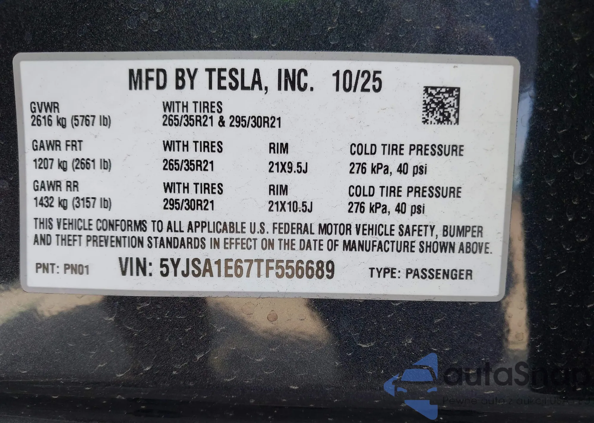 • VIN 5YJSA1AC1DFP10200